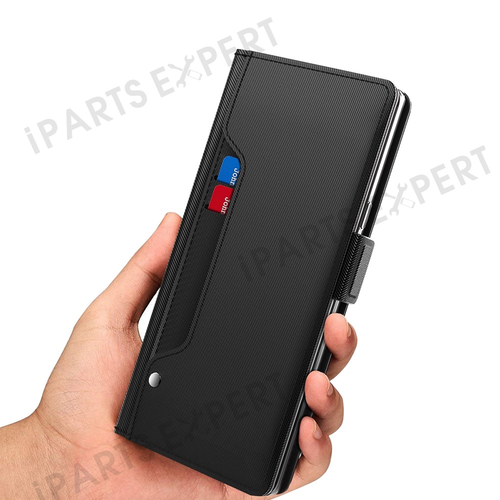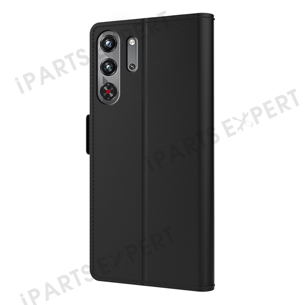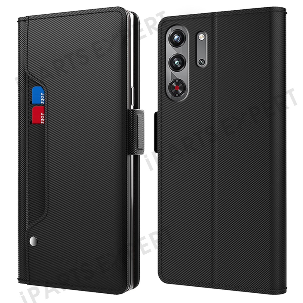 For ZTE nubia Red Magic 10 Pro 5G Case Stand PU Leather Phone Cover Card Holder Mirror - Black