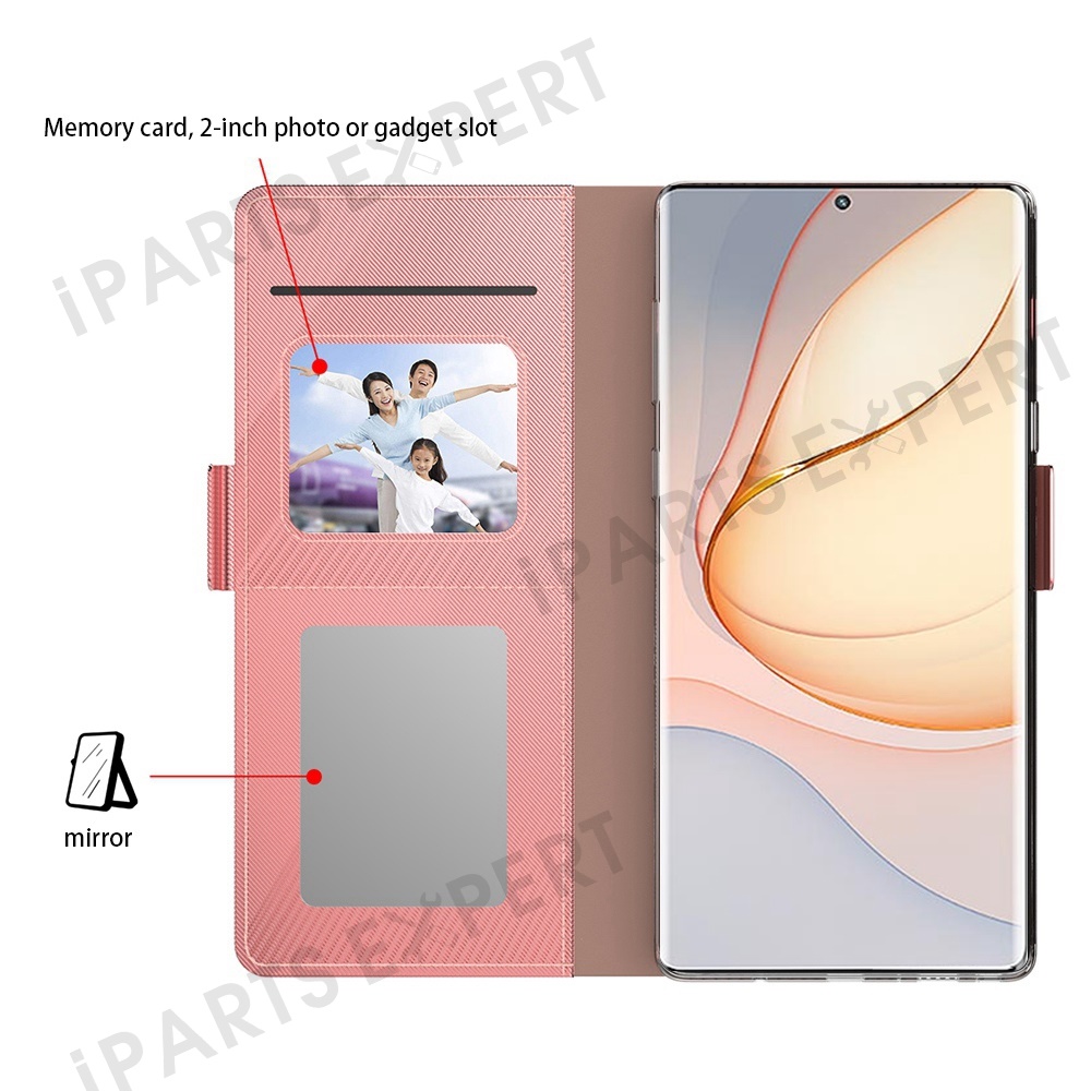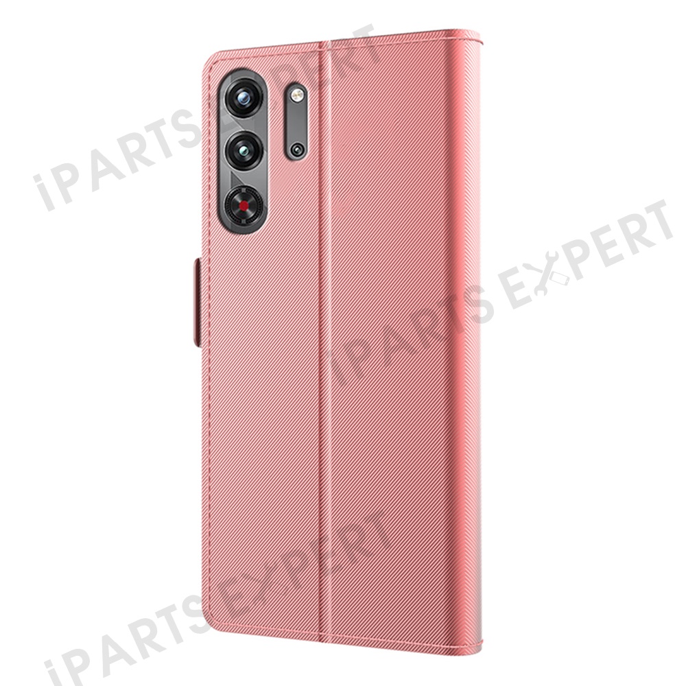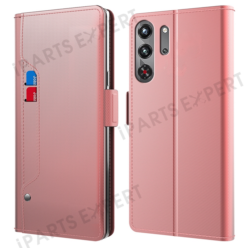 For ZTE nubia Red Magic 10 Pro 5G Case Stand PU Leather Phone Cover Card Holder Mirror - Rose Gold