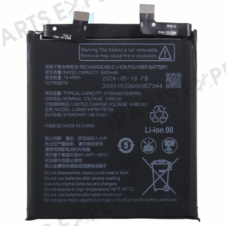 For ZTE nubia Z50S Pro 5G 3.89V 5000mAh Li-Polymer Battery Assembly Part (Without Logo) (Encode: li3949T44P8h776759)