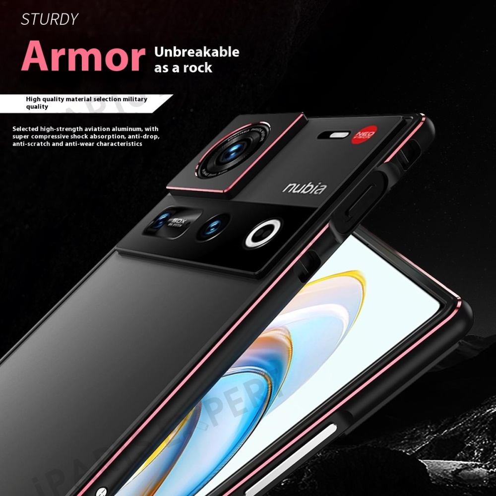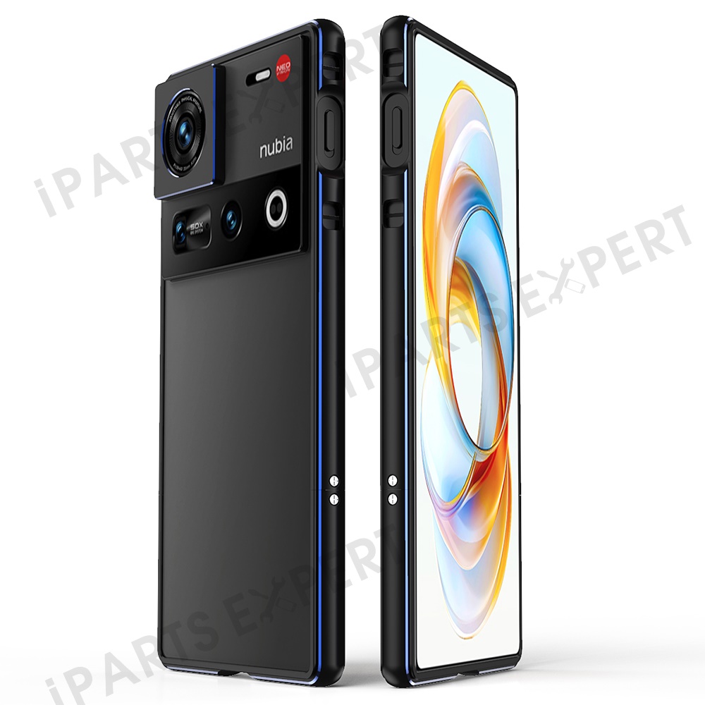 For ZTE nubia Z70 Ultra 5G Bumper Case Metal Frame Phone Cover with Camera Lens Guard - Black / Blue
