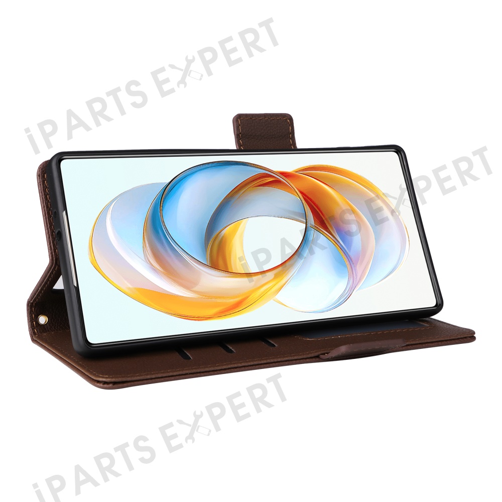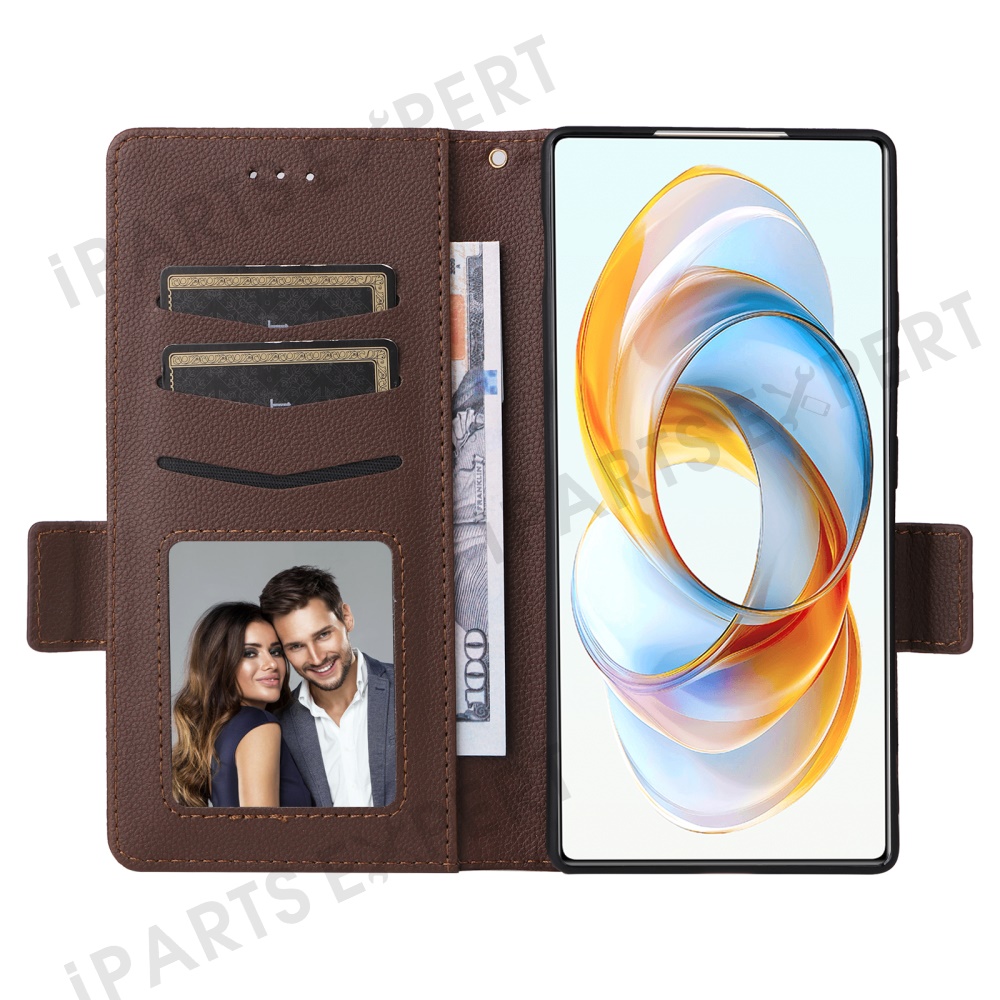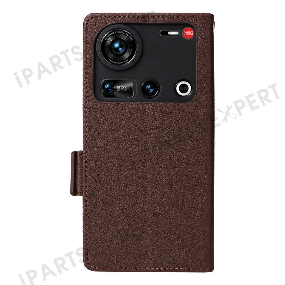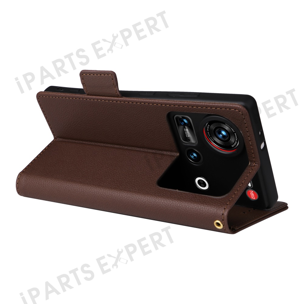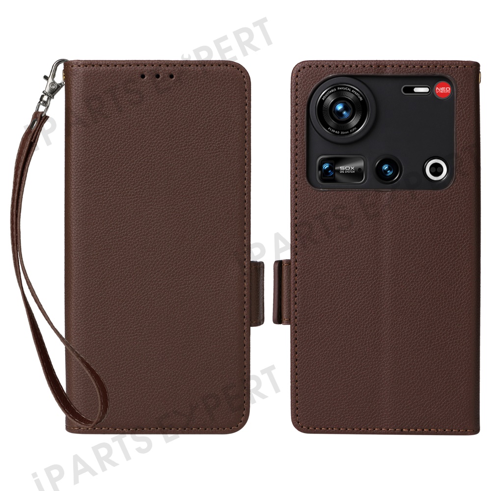For ZTE nubia Z70S Ultra 5G / nubia Z70 Ultra 5G Case with Wrist Strap Litchi Texture PU Leather Wallet Phone Cover - Brown