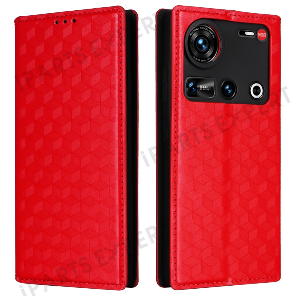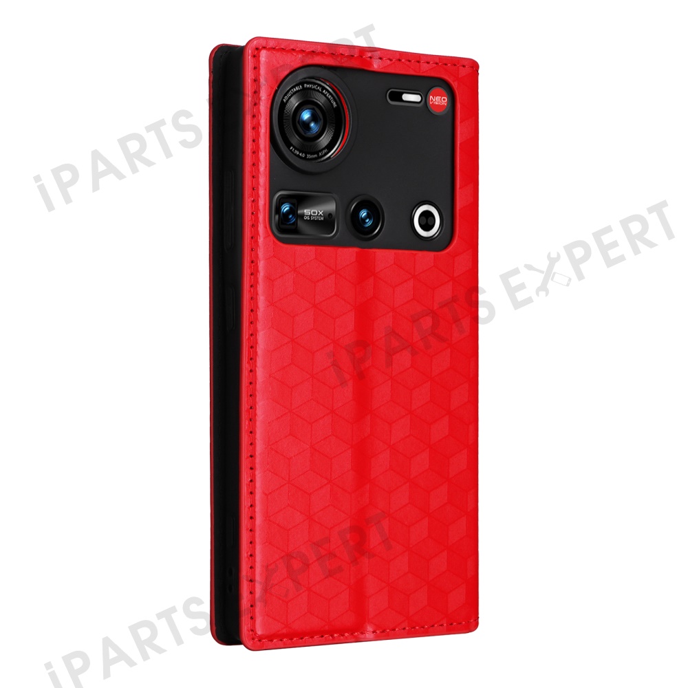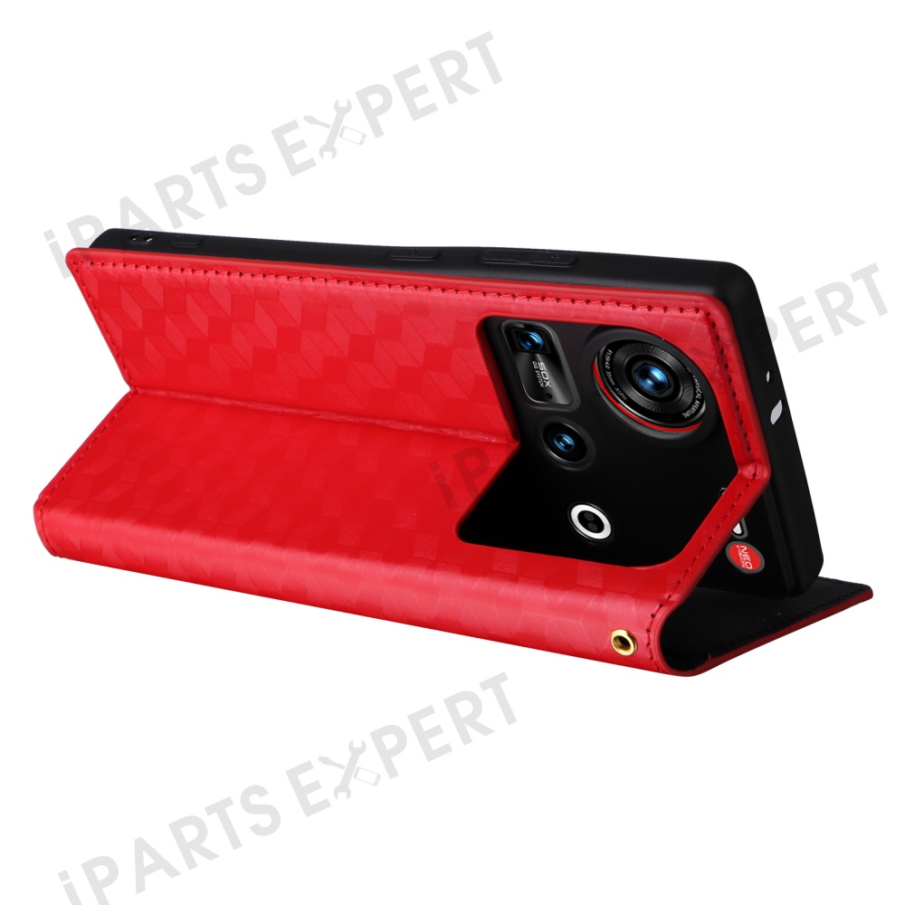 For ZTE nubia Z70S Ultra 5G / nubia Z70 Ultra 5G Wallet Case Rhombus Imprinted Leather Phone Cover - Red