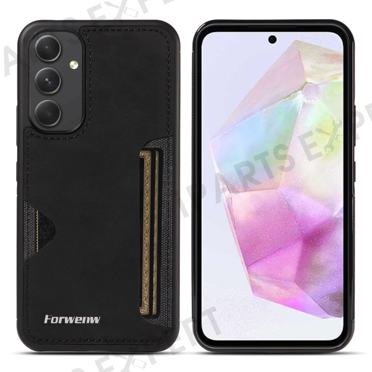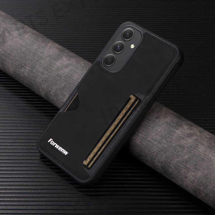 FORWENW F5 Series For Samsung Galaxy A34 5G Case Card Holder Leather+TPU Cell Phone Cover - Black