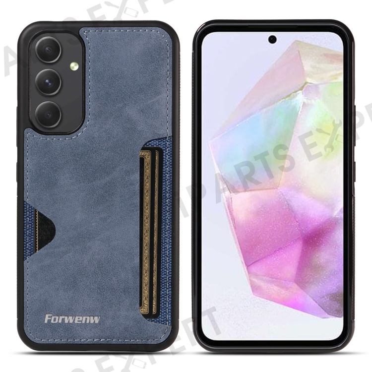 FORWENW F5 Series For Samsung Galaxy A34 5G Case Card Holder Leather+TPU Cell Phone Cover - Blue