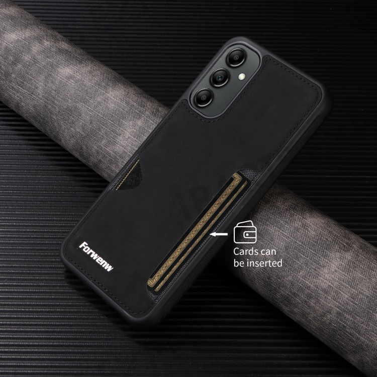 FORWENW F5 Series For Samsung Galaxy S24+ Cell Phone Case Anti-scratch Leather+TPU Card Holder Cover - Black