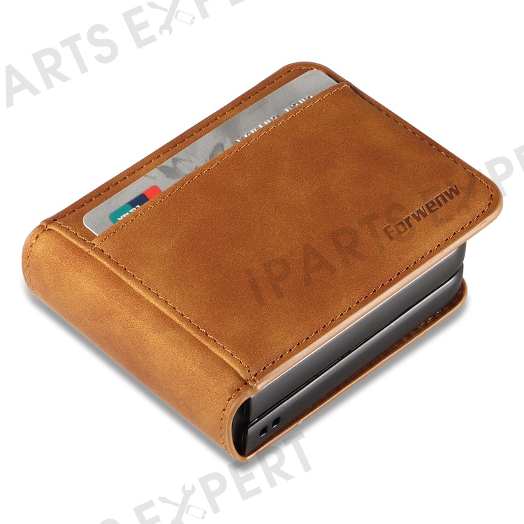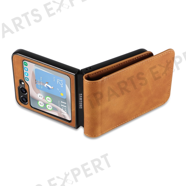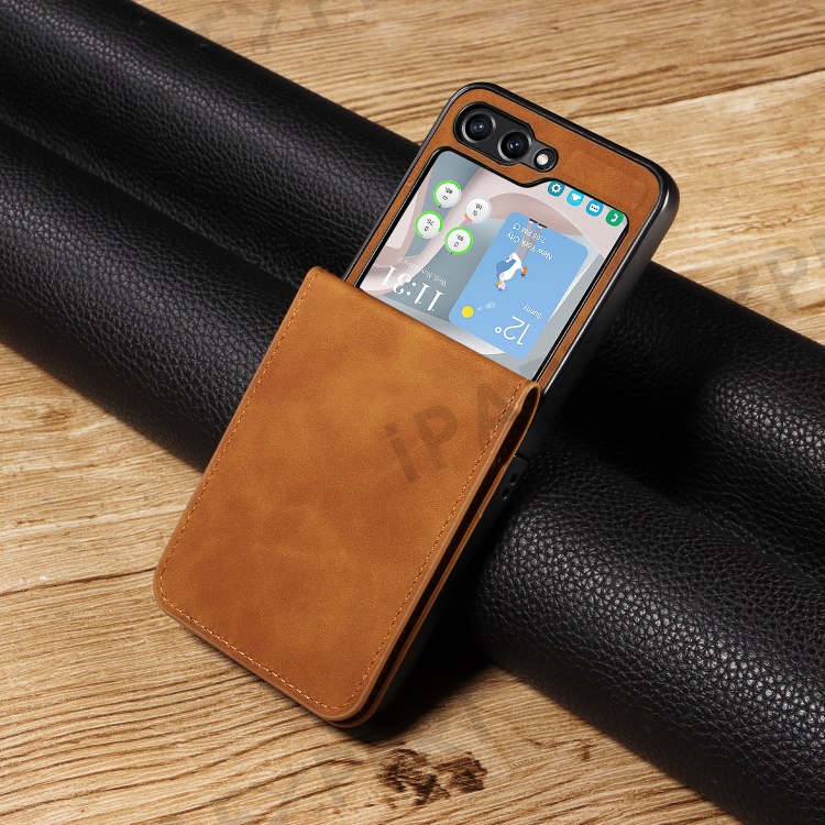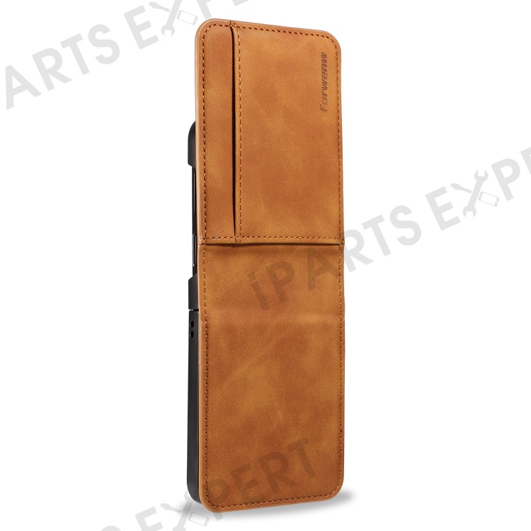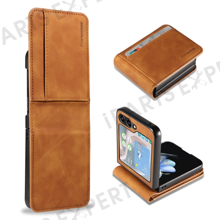 FORWENW Fantasy Series for Samsung Galaxy Z Flip5 5G Case Skin-touch Card Holder Phone Cover - Brown