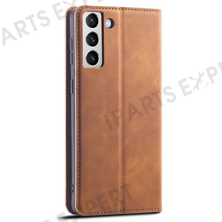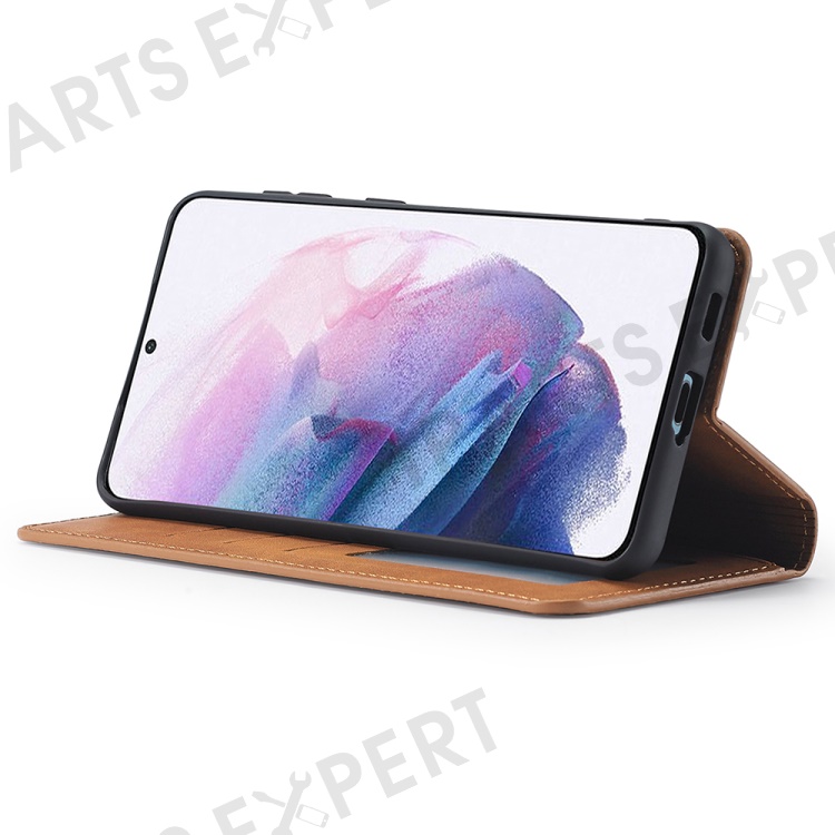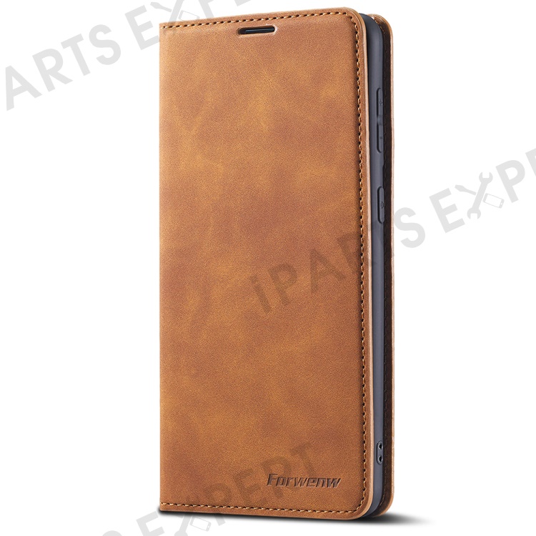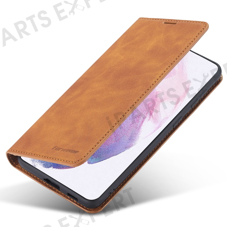 FORWENW Fantasy Series Soft TPU Inner Case Skin-touch PU Leather Cover with Wallet Stand for Samsung Galaxy S22+ 5G - Brown