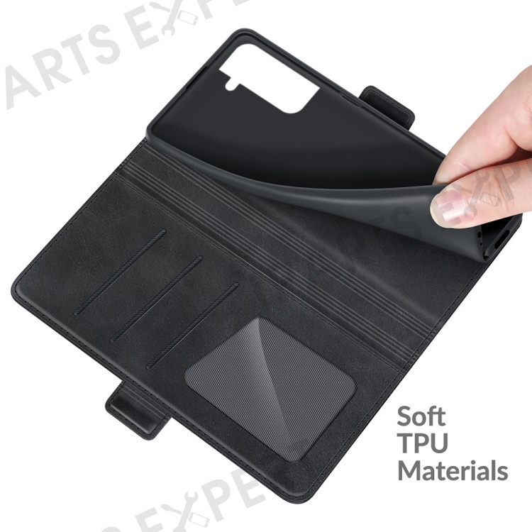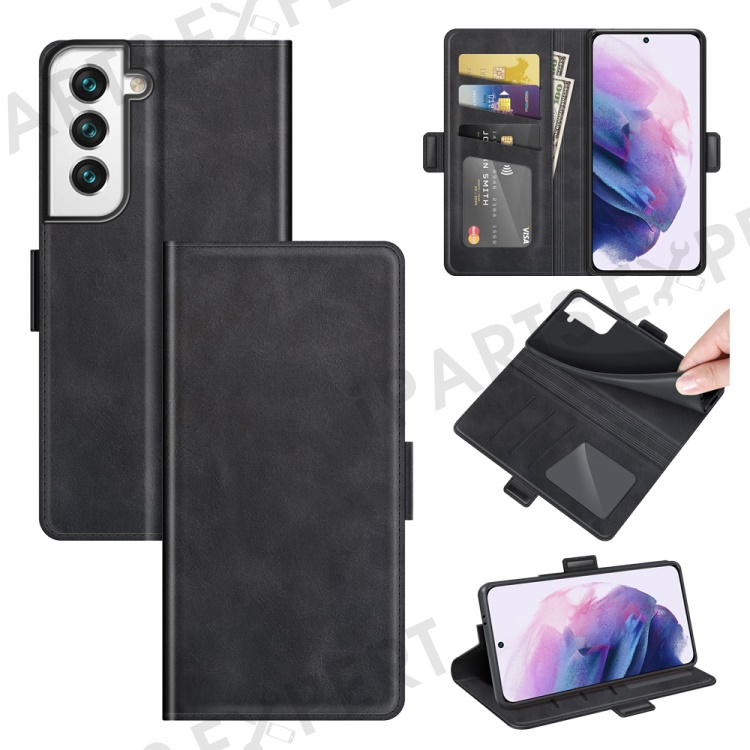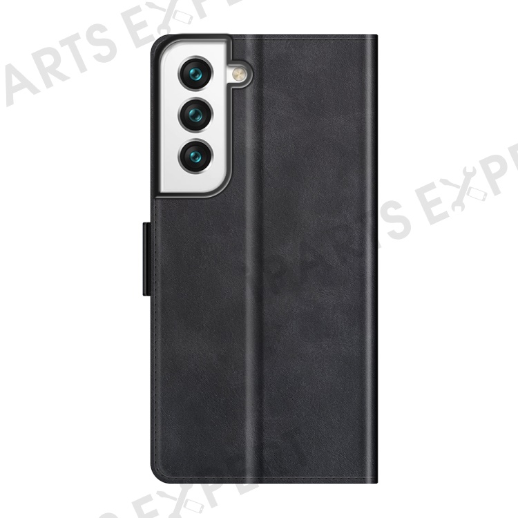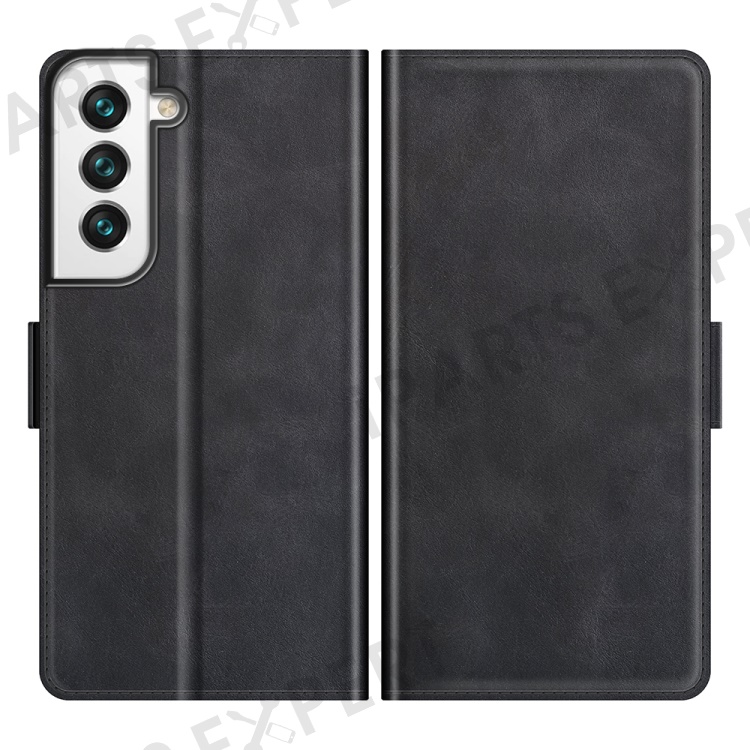 Full Coverage PU Leather Wallet Stand Flip Phone Case with Double Magnetic Clasps for Samsung Galaxy S22+ 5G - Black