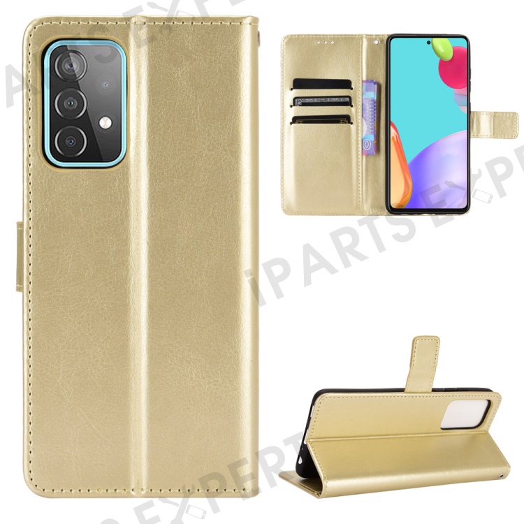 Full Protection Crazy Horse Texture Leather Shell with Wallet and Stand for Samsung Galaxy A52 4G/5G / A52s 5G - Gold