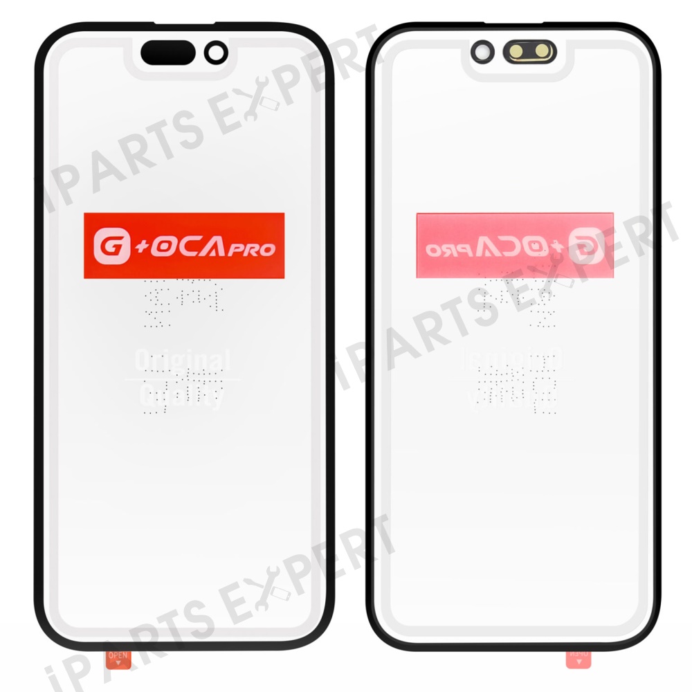 G+OCAPRO For iPhone 14 Pro Front Screen Glass Lens + OCA Adhesive Replacement Parts (Without Logo)
