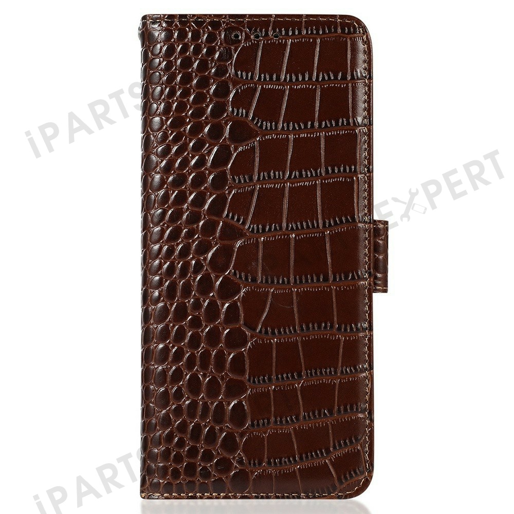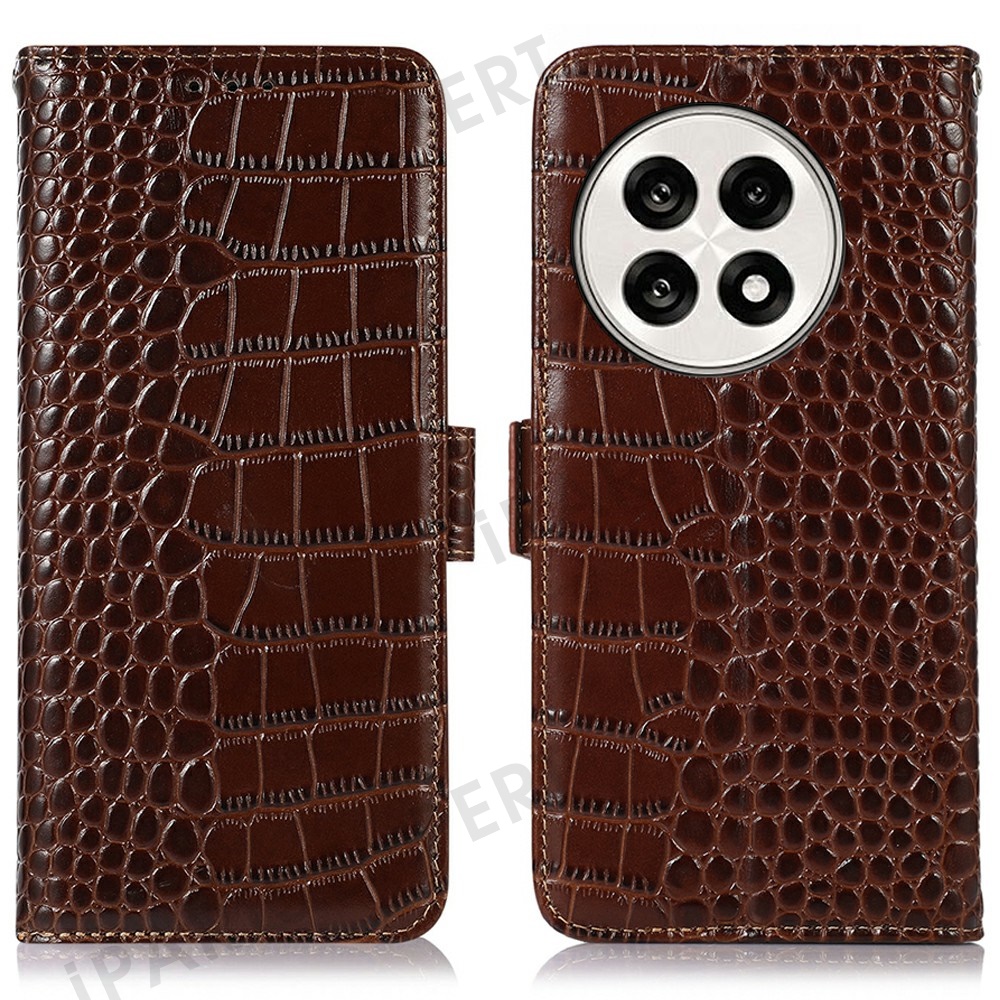 Genuine Cow Leather Phone Case for OnePlus Ace 5 Pro 5G / Ace 5 5G / 13R 5G Crocodile Texture Phone Wallet Cover - Brown