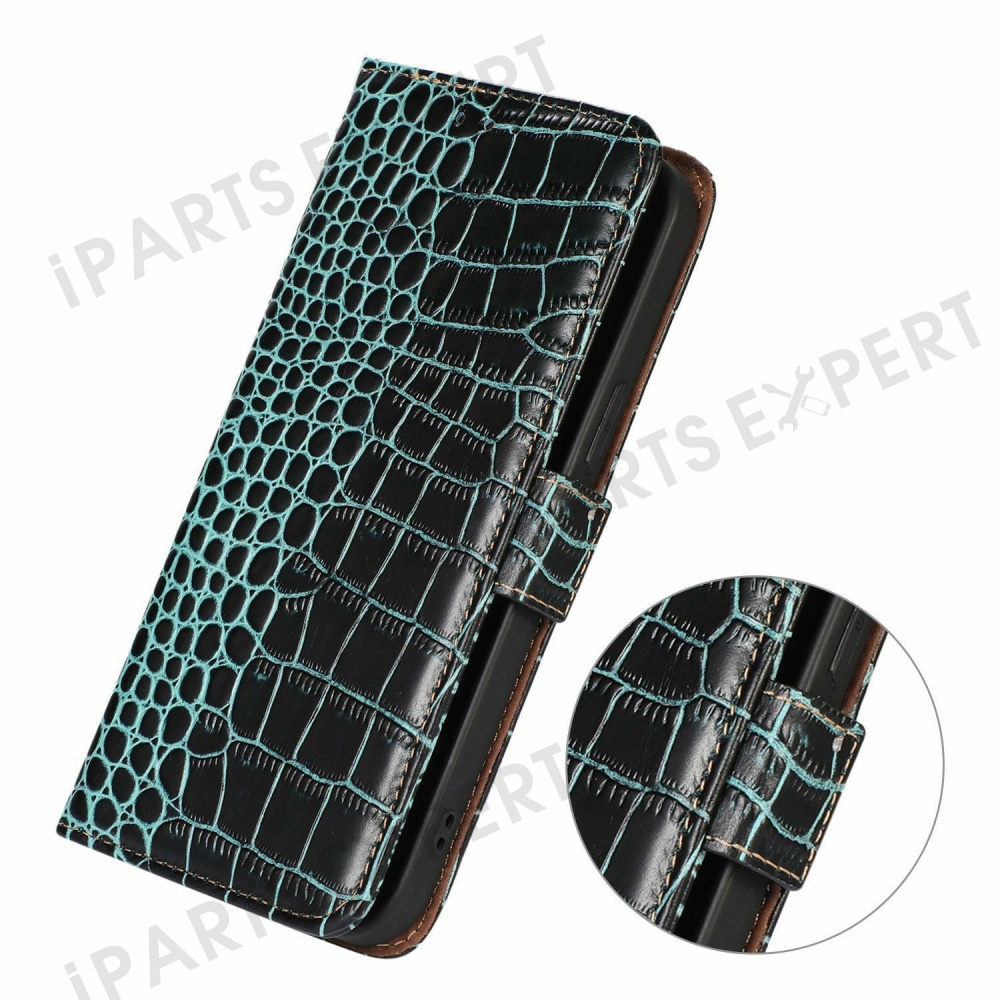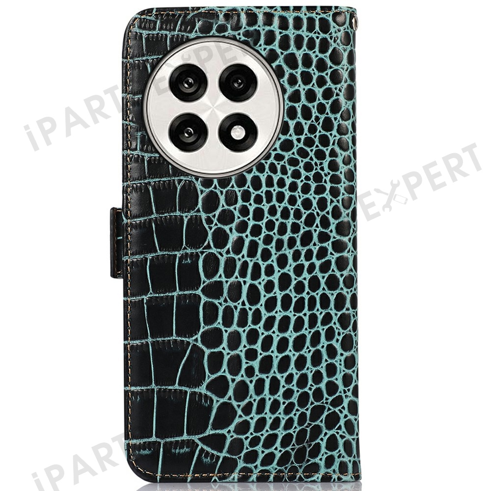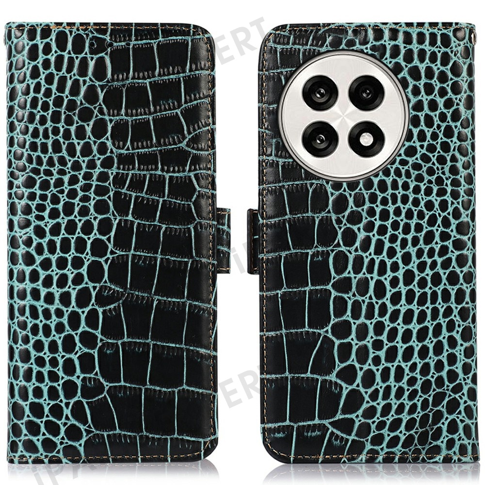 Genuine Cow Leather Phone Case for OnePlus Ace 5 Pro 5G / Ace 5 5G / 13R 5G Crocodile Texture Phone Wallet Cover - Green