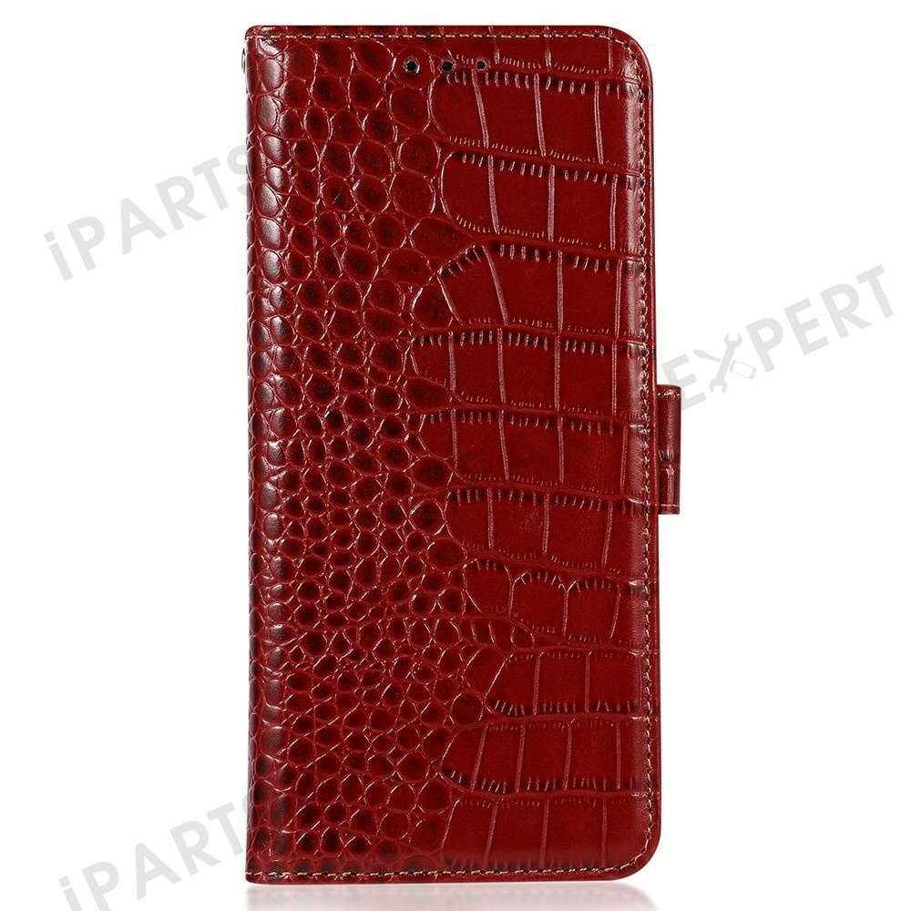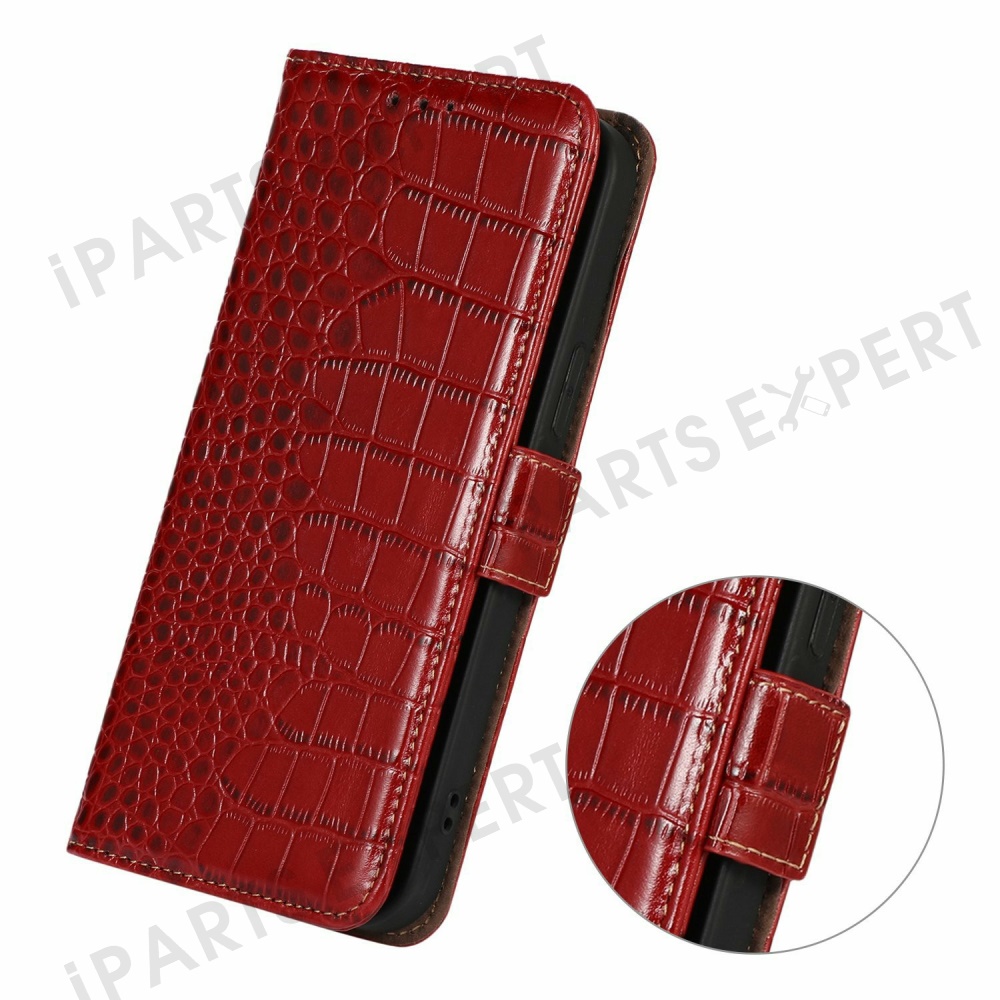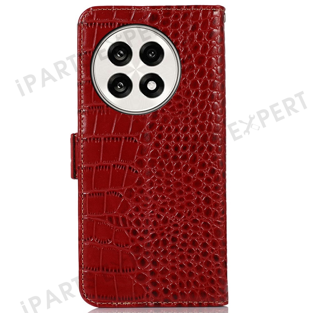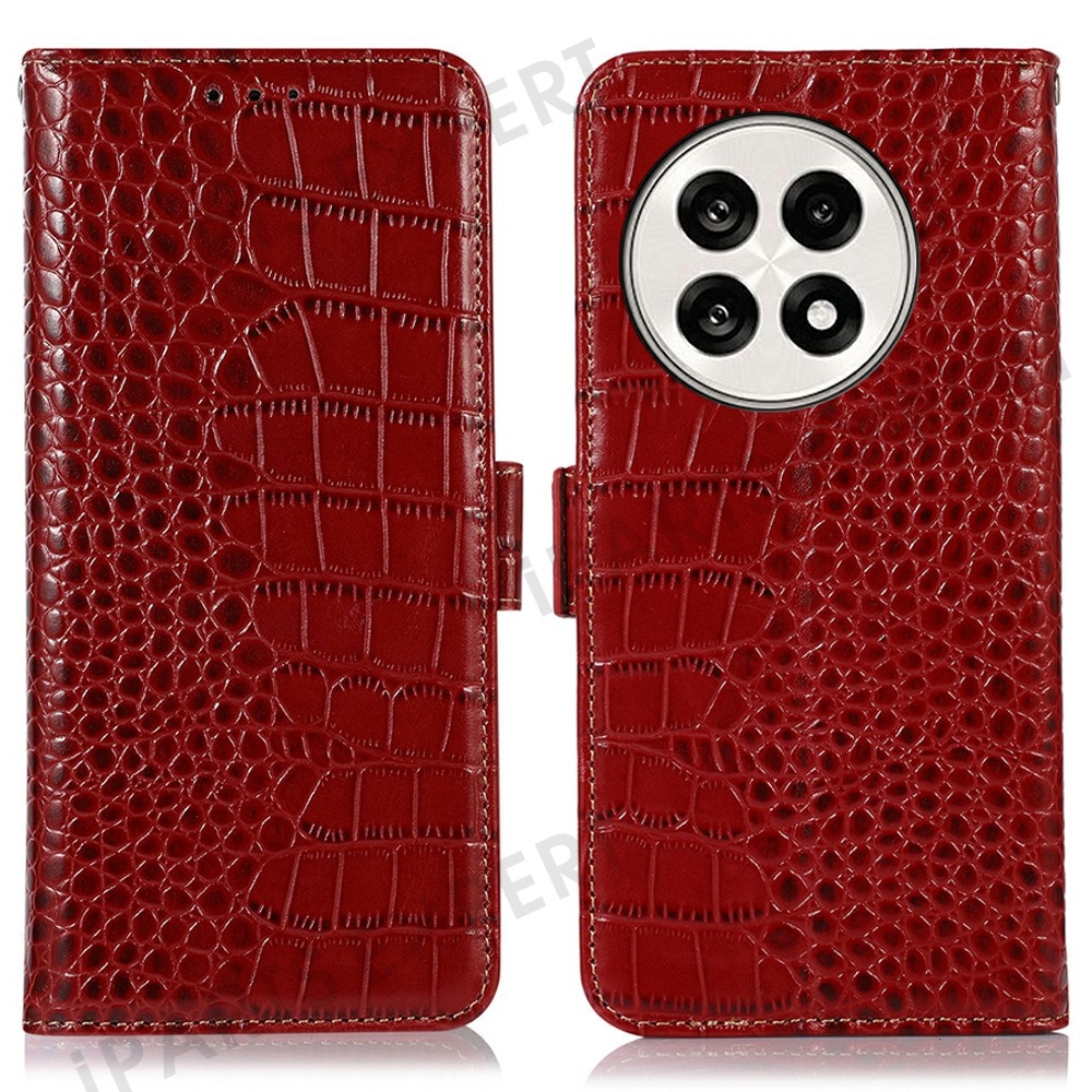 Genuine Cow Leather Phone Case for OnePlus Ace 5 Pro 5G / Ace 5 5G / 13R 5G Crocodile Texture Phone Wallet Cover - Red
