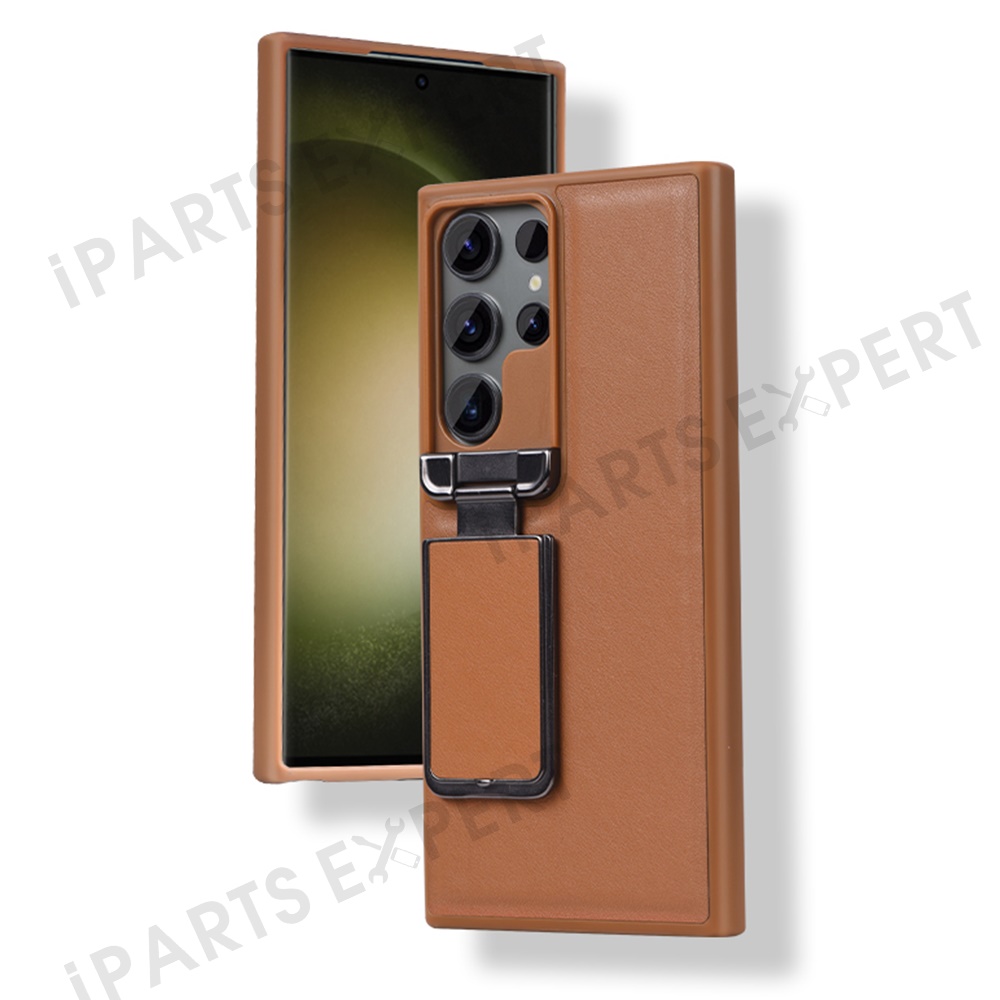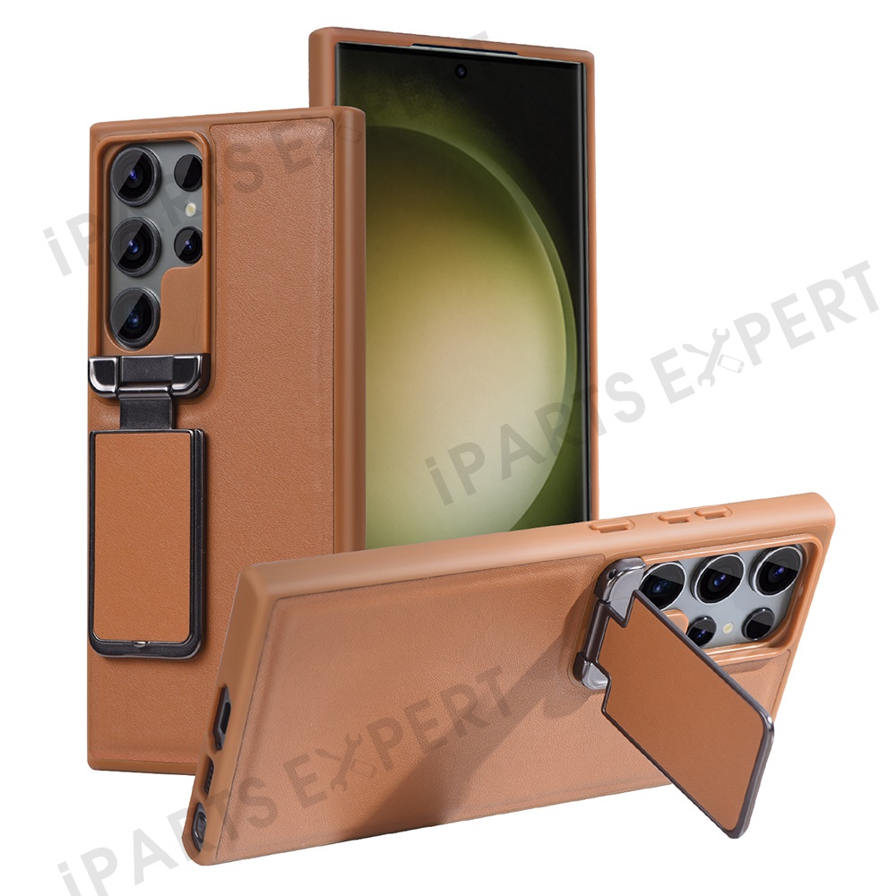 GKK For Samsung Galaxy S24 Ultra Case Lens Cover Kickstand TPU+PU Phone Back Cover - Brown