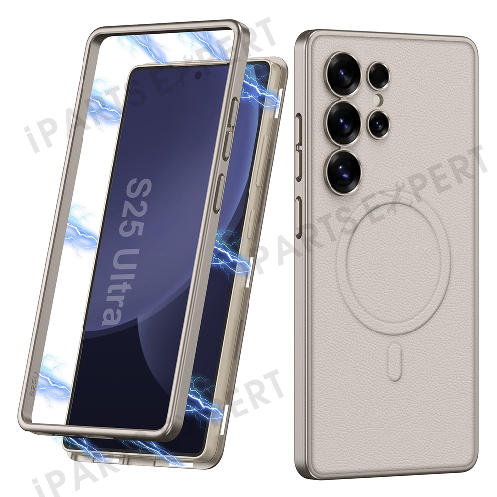 GKK For Samsung Galaxy S25 Ultra Magnetic Case PU + PC Phone Back Cover Magnetic Installation - Titanium Grey