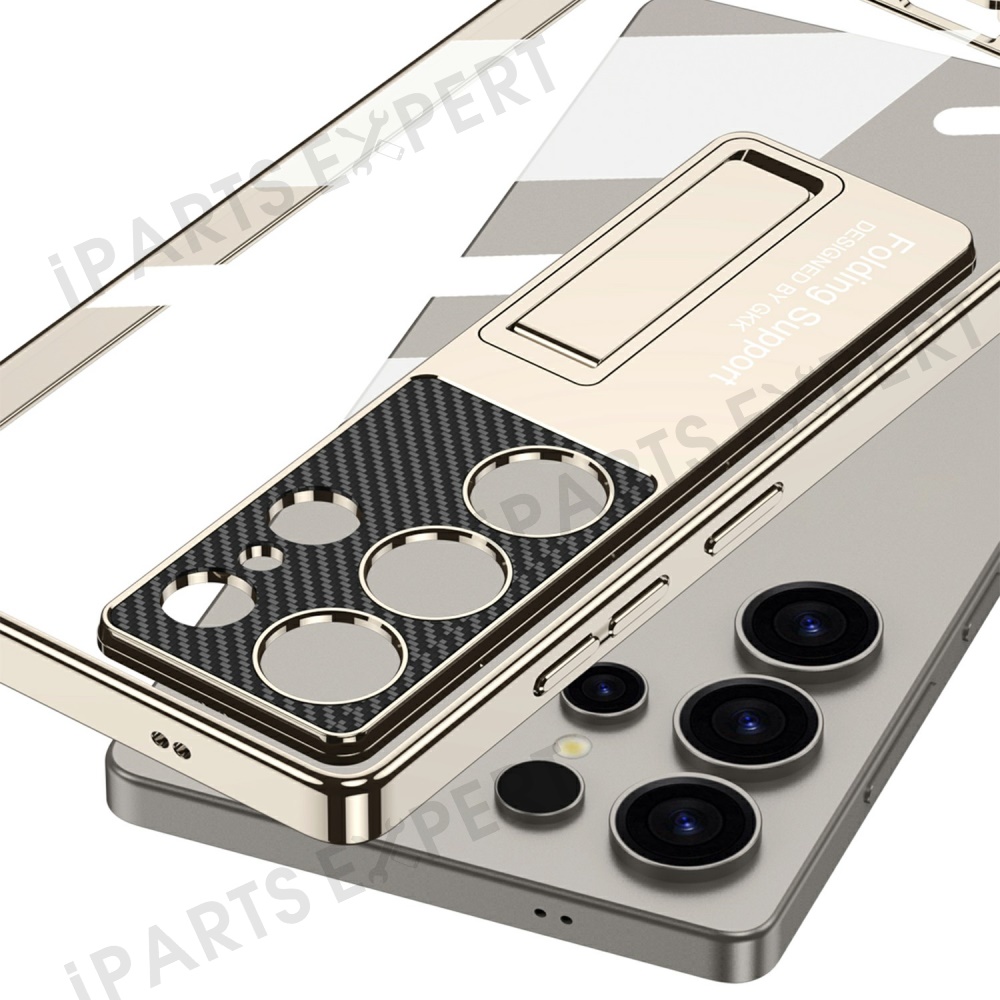 GKK For Samsung Galaxy S25 Ultra Case Kickstand TPU + PC Phone Shell Electroplating - Transparent