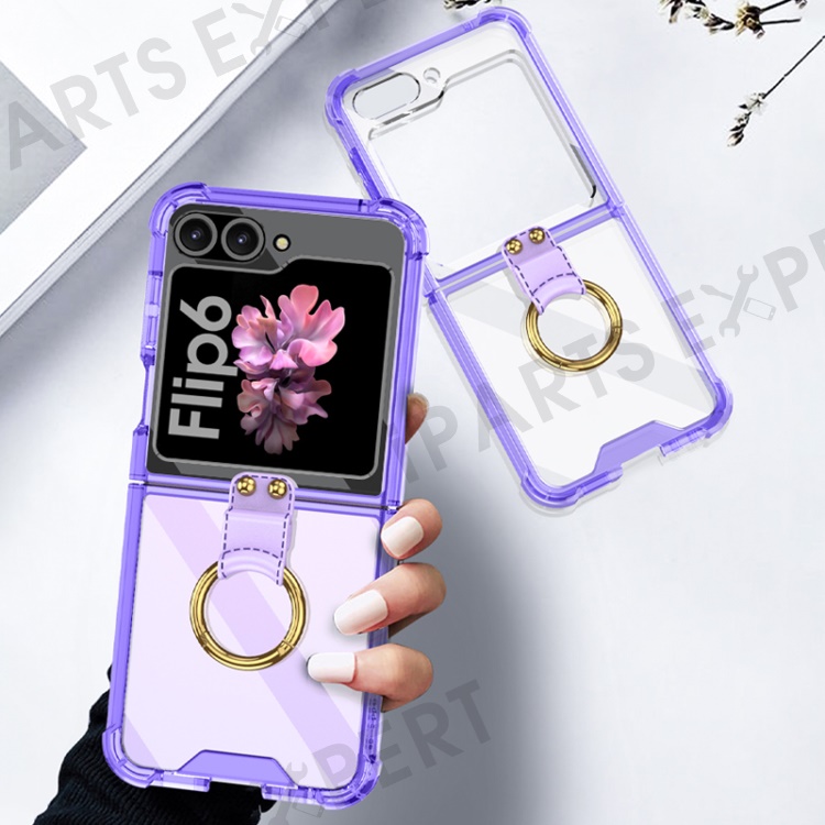 GKK For Samsung Galaxy Z Flip7 FE 5G / Z Flip6 5G Case Ring Holder Kickstand TPU Phone Cover - Transparent Purple