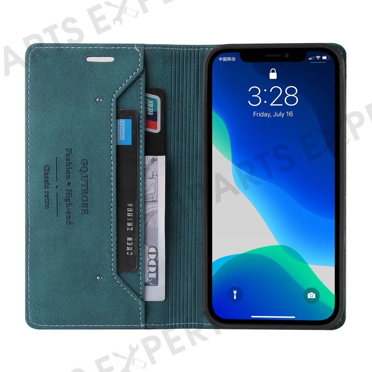 GQ.UTROBE 008 Series Full-Protective Leather Phone Auto-Absorbed Shell Case with RFID Blocking Technology for iPhone 13 Pro Max 6.7 inch - Blue