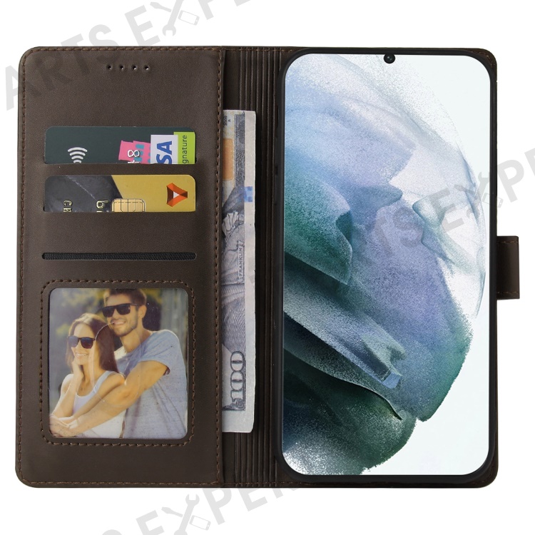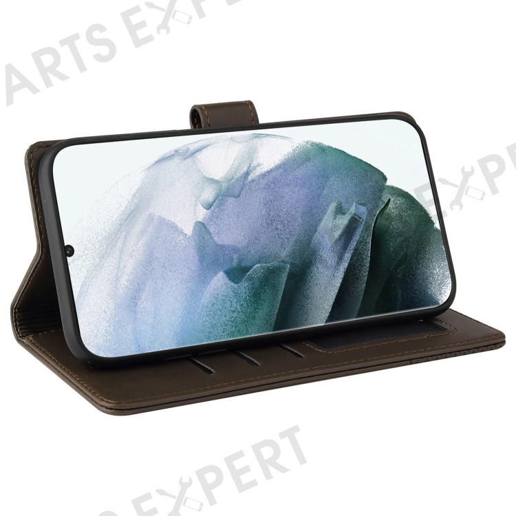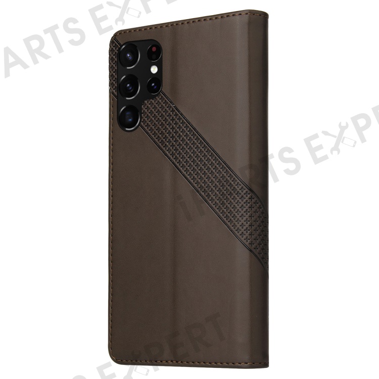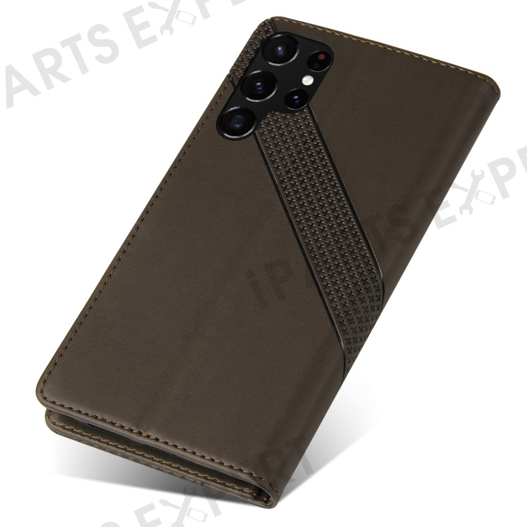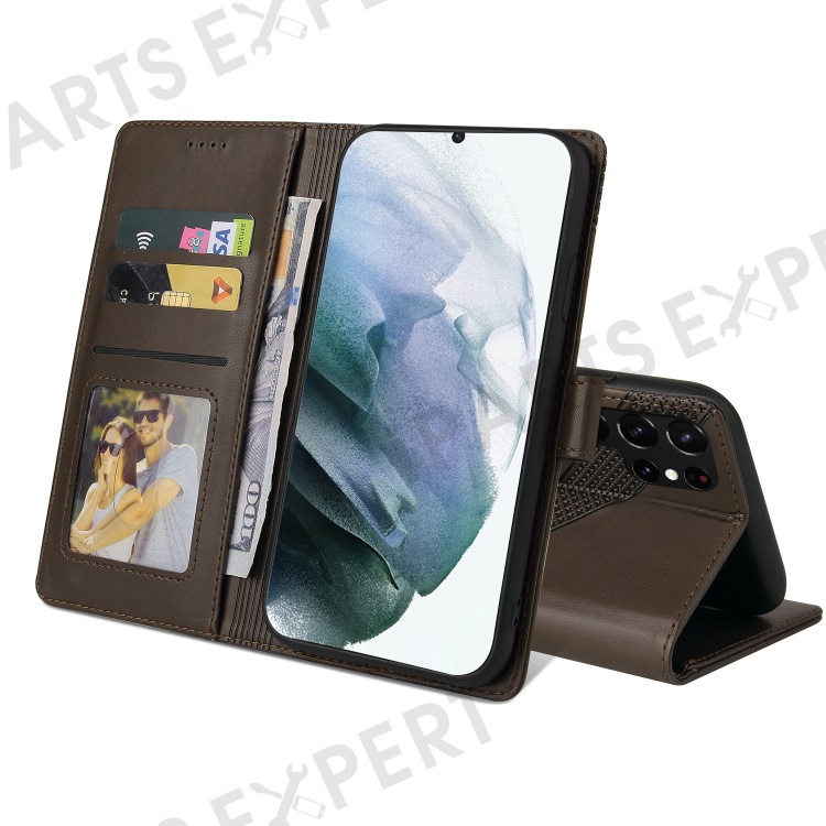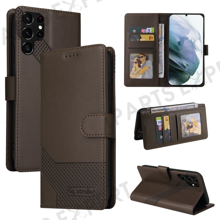 GQ.UTROBE 009 Series Splicing PU Leather + TPU Phone Cover Stand Wallet Case for Samsung Galaxy S22 Ultra 5G - Brown