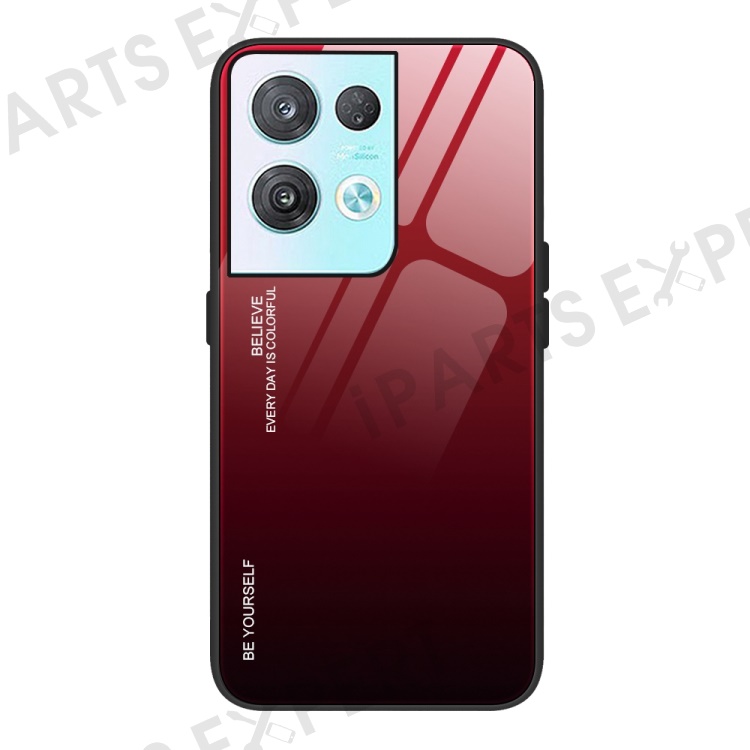 Gradient Color Design Case for Oppo Reno8 Pro 5G (Global Version) / Reno8 Pro+ (China) 5G, Anti-fall Light Slim Tempered Glass + PC + TPU Phone Shell - Red / Black