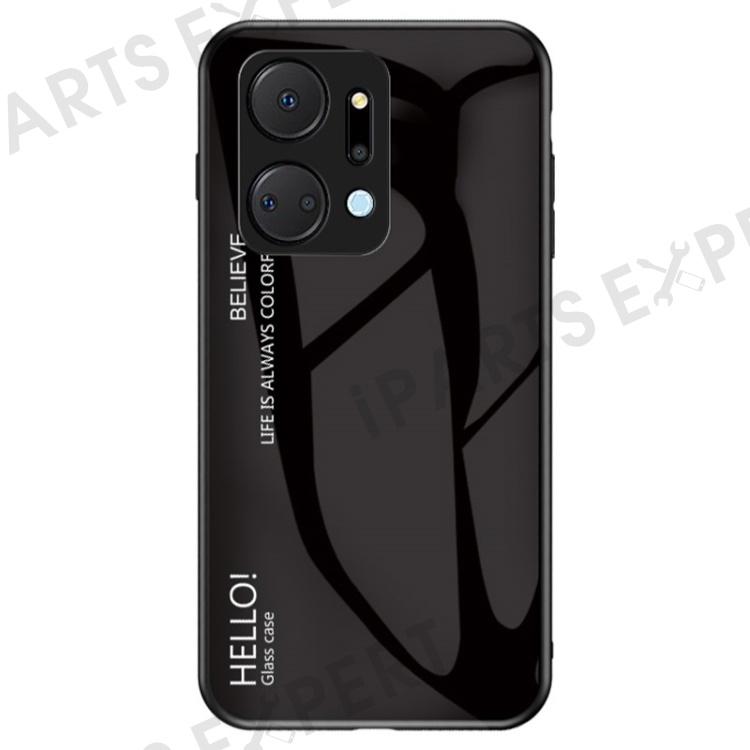 Gradient Color Phone Case for Honor X7a 5G, Tempered Glass +PC+TPU Phone Cover - Black