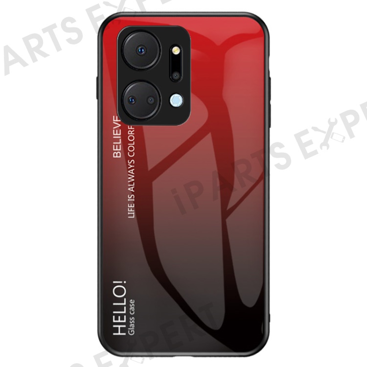 Gradient Color Phone Case for Honor X7a 5G, Tempered Glass +PC+TPU Phone Cover - Gradient Red Black