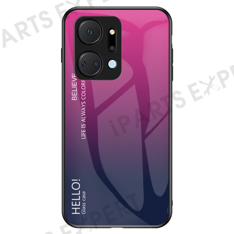 Gradient Color Phone Case for Honor X7a 5G, Tempered Glass +PC+TPU Phone Cover - Gradient Rose