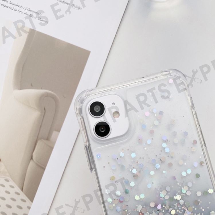 Gradient Epoxy TPU Cover for iPhone 15 Pro Max Glittering Sequins Anti-Scratch Phone Case with Slim Lanyard - Pink