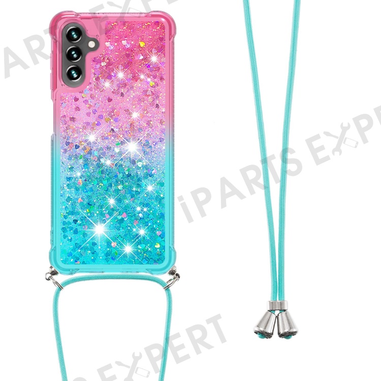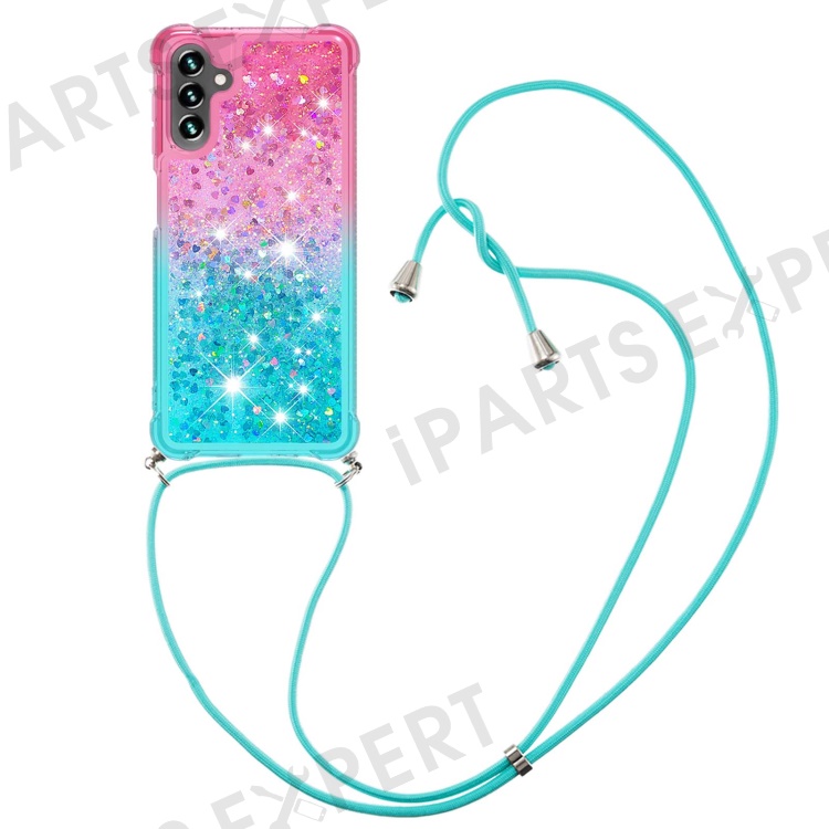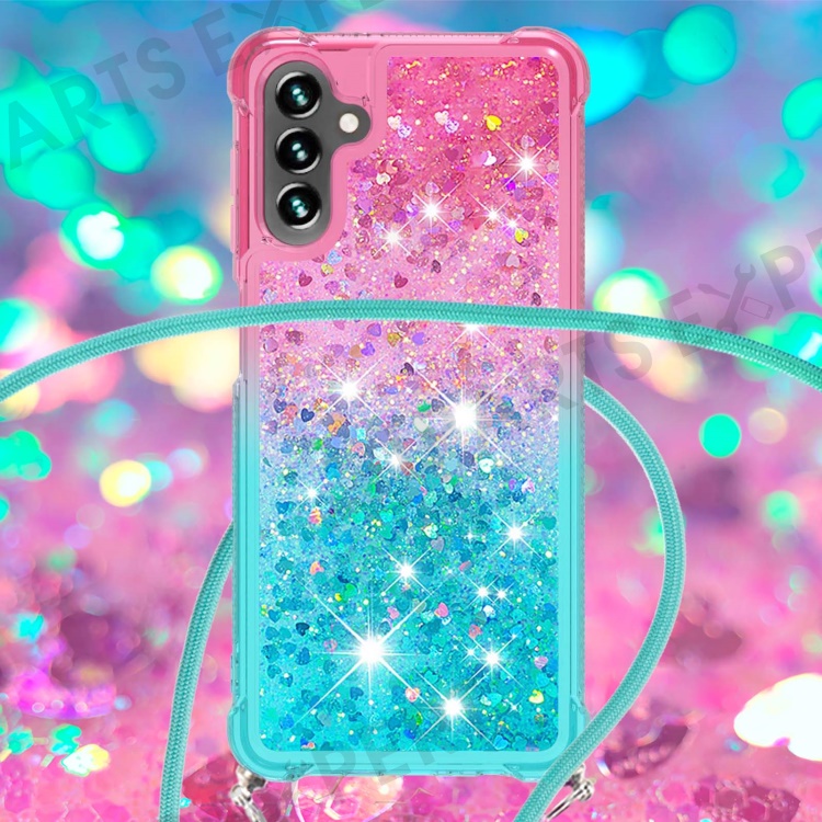 For Samsung Galaxy A13 5G / A04s 4G (164.7mm) / A04s 4G (164.7mm) Phone Case Gradient Quicksand TPU Back Cover with Long Strap - Pink / Sky Blue