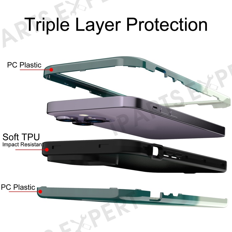 - The fusion of two premium materials: soft TPU and hard plastic, provide great protection