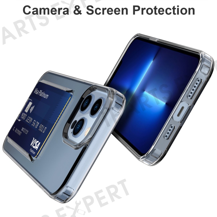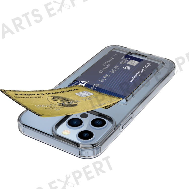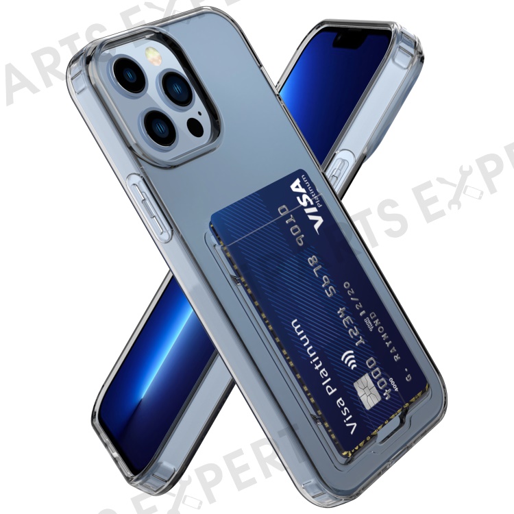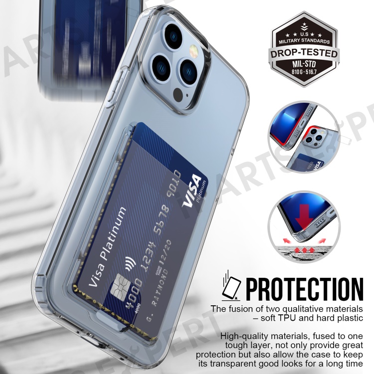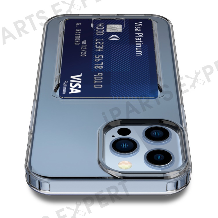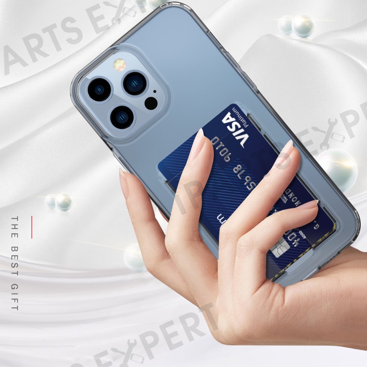 GW18 Card Holder Transparent Thickened Phone TPU Case Cover for iPhone 13 Pro Max 6.7 inch - Transparent Black