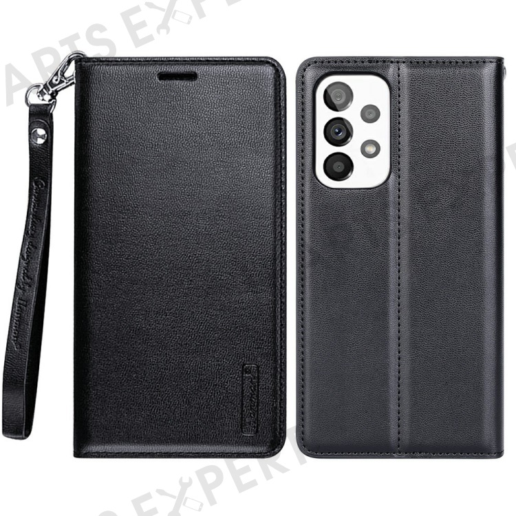 HANMAN Minuo Series for Samsung Galaxy A23 4G / 5G (Global Version) Wallet Stand Phone Case PU Leather Full Protection Cover - Black
