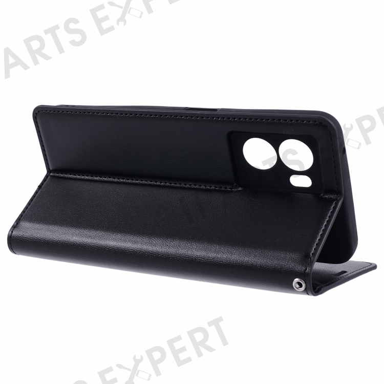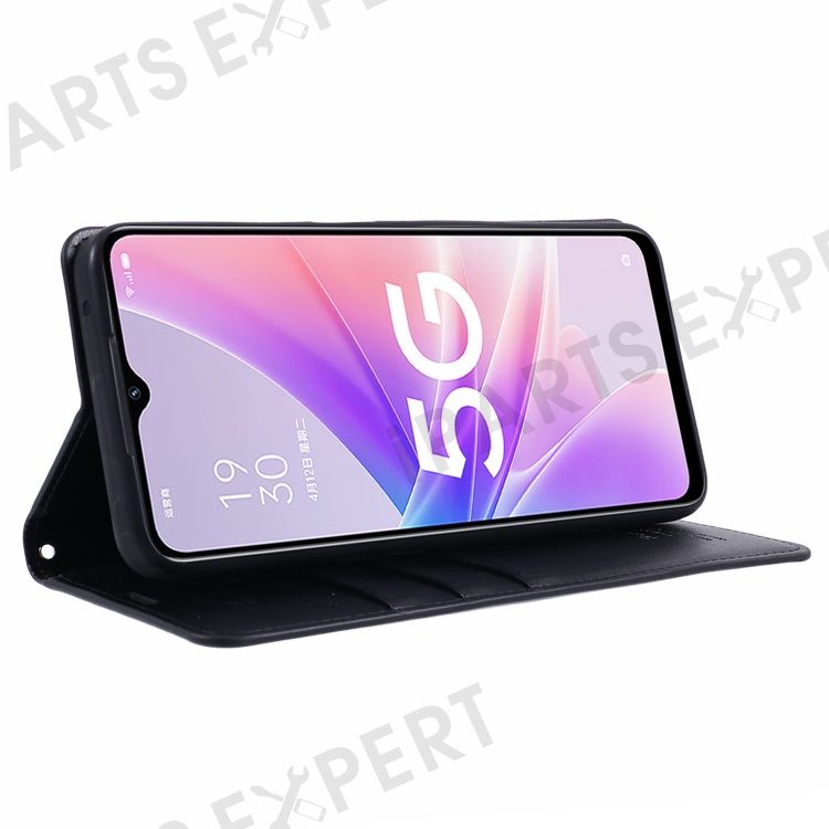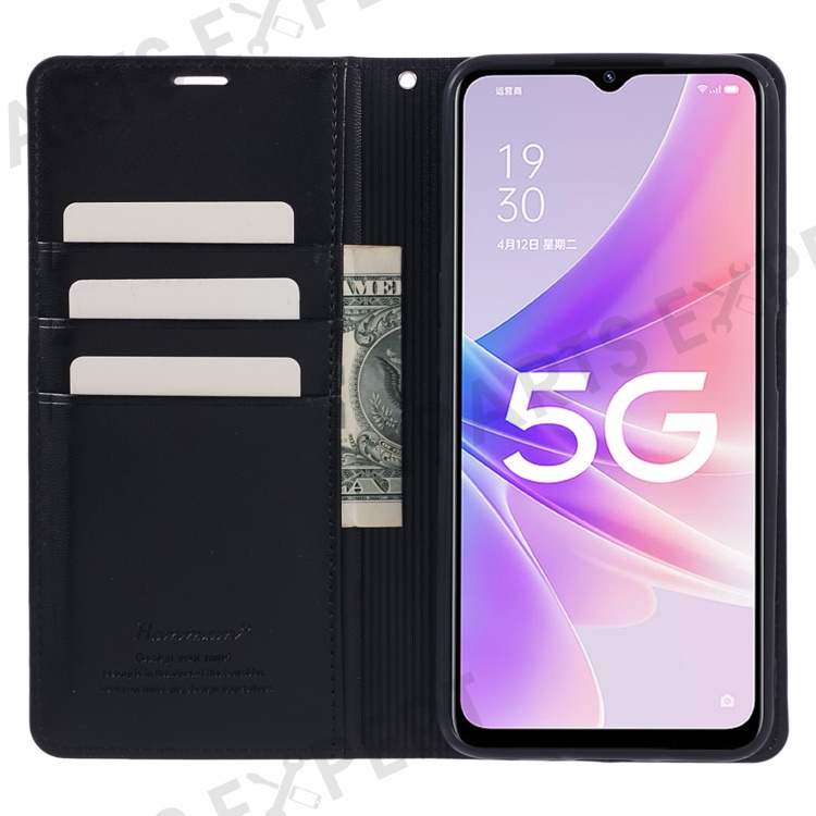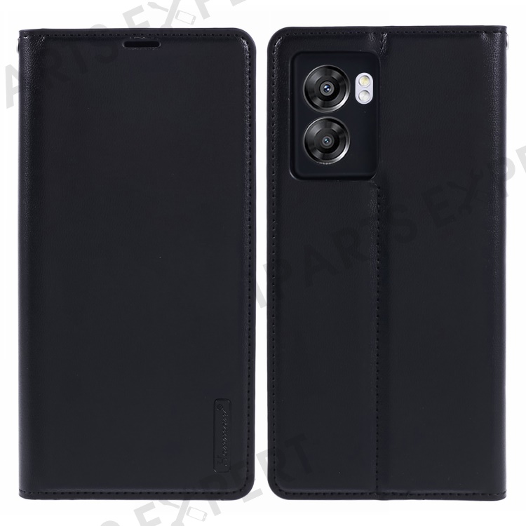HANMAN Minuo Series For Oppo A57 (2022) 5G / A77 5G / K10 5G / A56s 5G / Realme Q5i / V23 5G Phone Case Leather Stand Wallet - Black