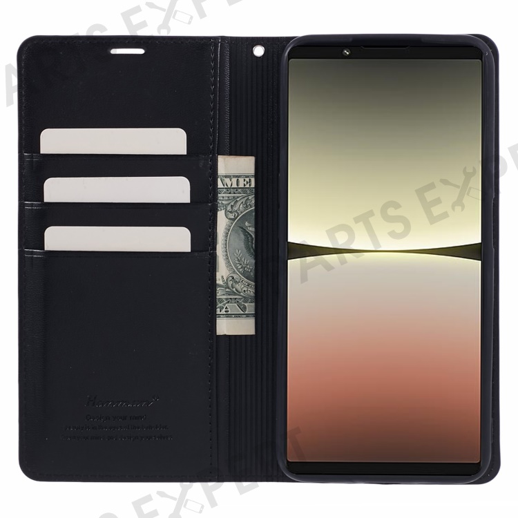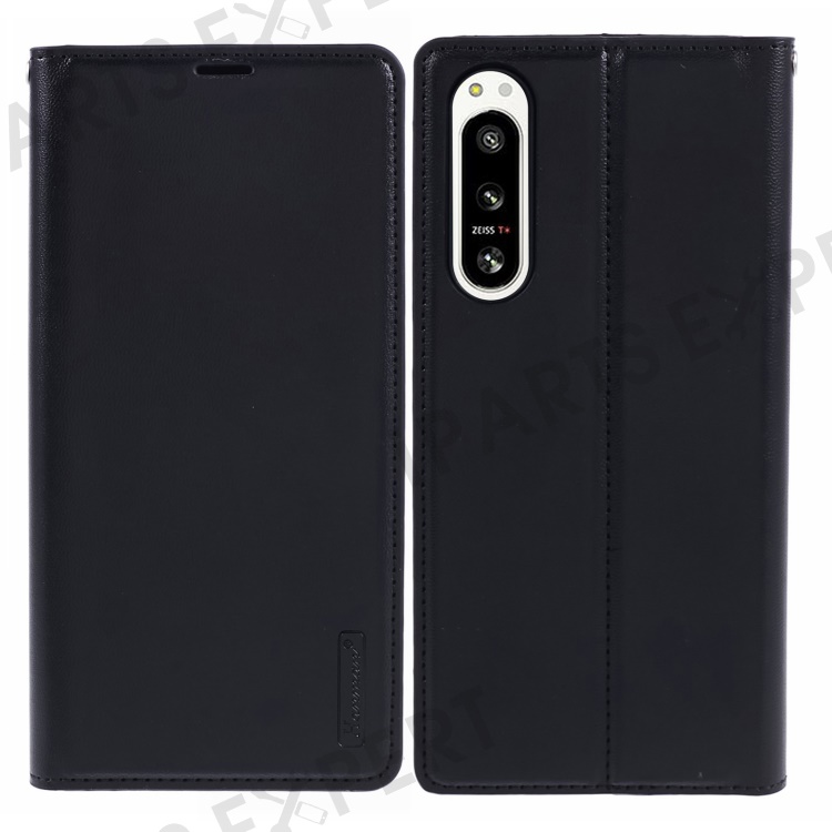 HANMAN Minuo Series For Sony Xperia 5 IV 5G Case Wallet PU Leather Shockproof Phone Cover - Black