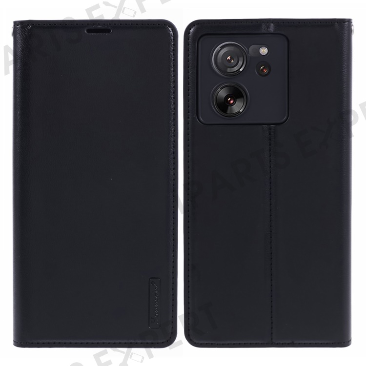 HANMAN Minuo Series For Xiaomi 13T / 13T Pro / Redmi K60 Ultra Case PU Leather Stand Magnetic Clasp Phone Cover - Black