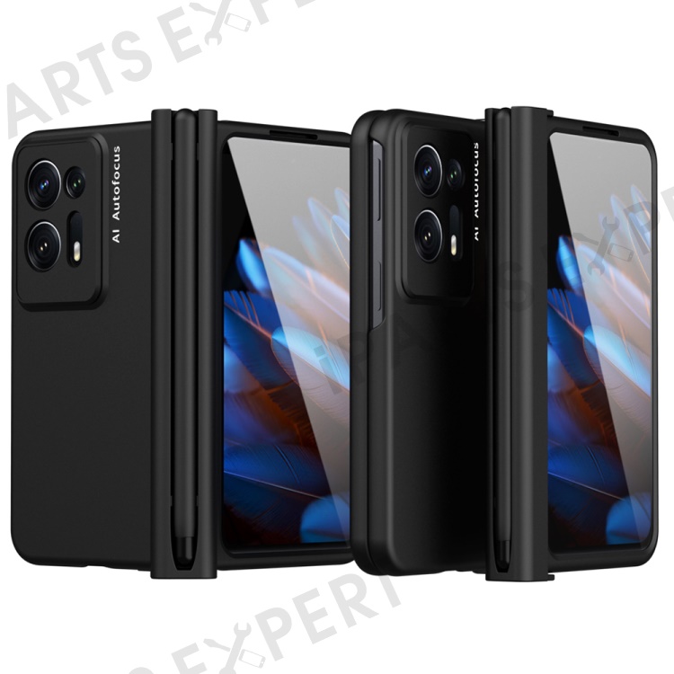 Hard PC Phone Case for Oppo Find N2 5G, Pen Slot Magnetic Hinge Cover with Tempered Glass Screen Film - Black