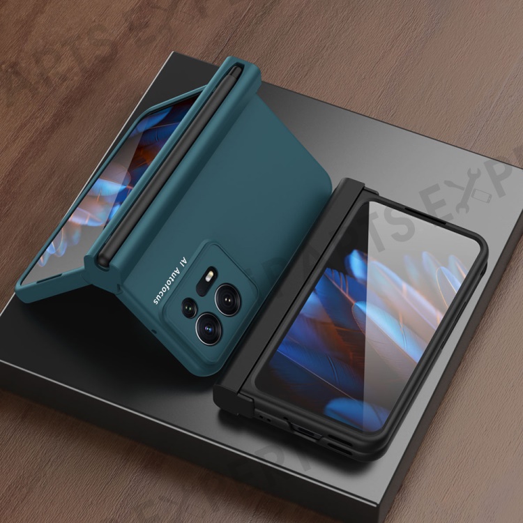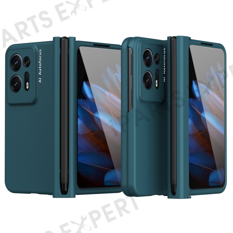 Hard PC Phone Case for Oppo Find N2 5G, Pen Slot Magnetic Hinge Cover with Tempered Glass Screen Film - Green