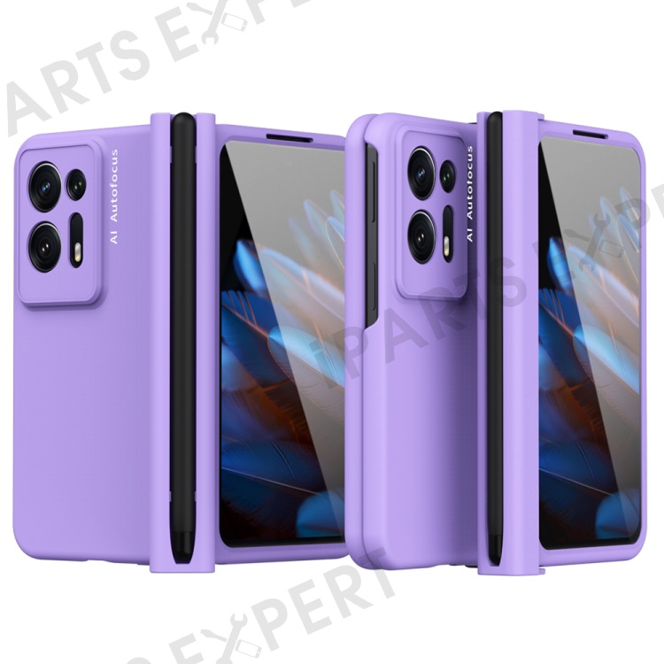 Hard PC Phone Case for Oppo Find N2 5G, Pen Slot Magnetic Hinge Cover with Tempered Glass Screen Film - Purple
