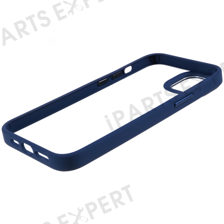 Hard PC + Soft TPU Hybrid Case for iPhone 14, Drop-proof Phone Protective Cover with Metal Button - Midnight Blue