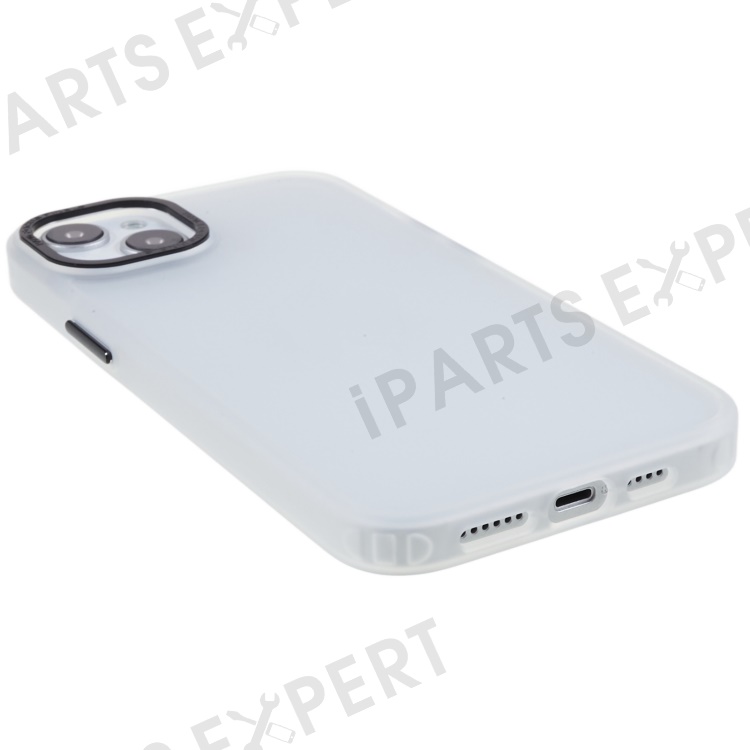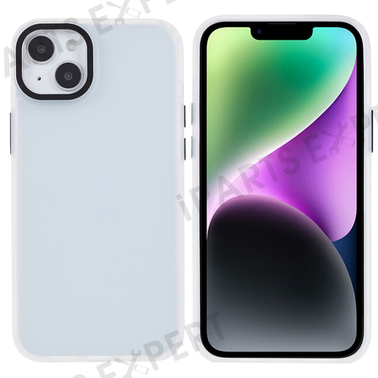Hard PC + Soft TPU Hybrid Case for iPhone 14, Drop-proof Phone Protective Cover with Metal Button - White