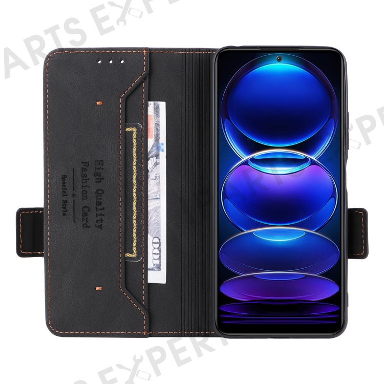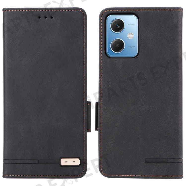 Hardware Decor Phone Case for Xiaomi Redmi Note 12 5G (Global) / (India) / (China) / Poco X5 5G , Dual Magnetic Clasp PU Leather Anti-drop Wallet Stand Phone Cover - Black