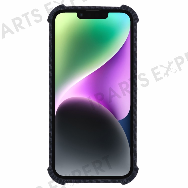 HRX Series for iPhone 14 Carbon Fiber Texture Case TPU+Silicone Precise Lens Cutouts Phone Cover - Black