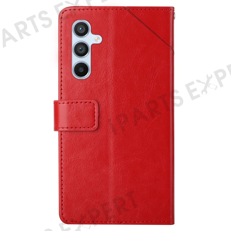 For Samsung Galaxy M35 5G Case with Wrist Strap Y Shaped Lines Imprint Leather Phone Cover - Red