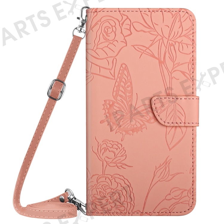 HT03 For Samsung Galaxy S24+ Case Leather Wallet Flip Stand Phone Cover with Shoulder Strap - Pink