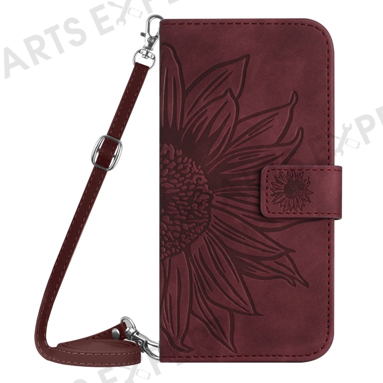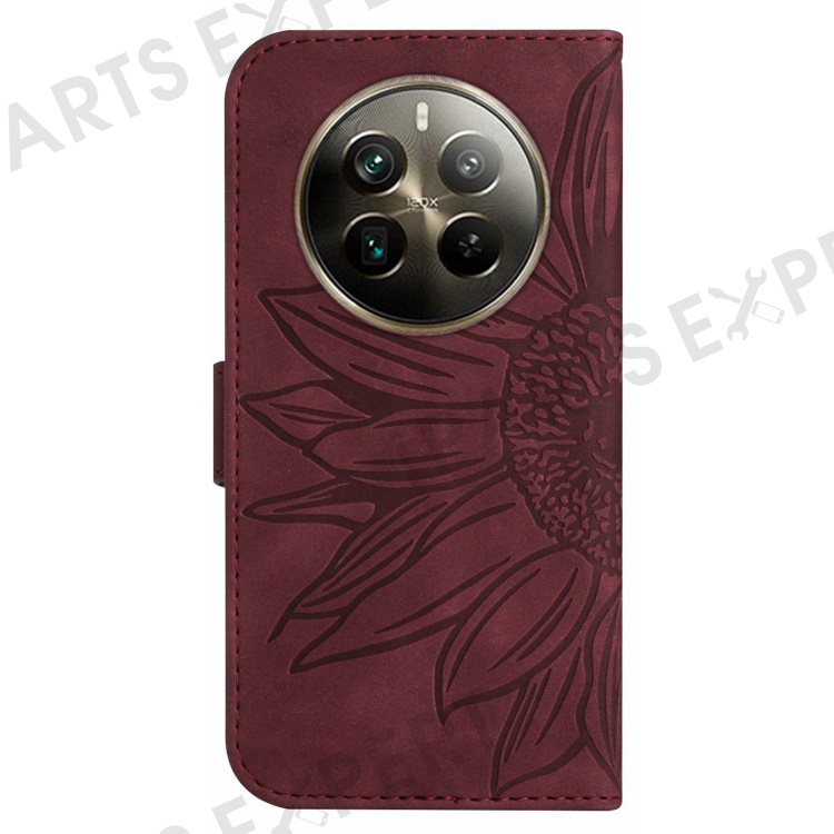 HT04 For Realme 12 4G / 12+ 5G Crossbody Case Sunflower PU Leather Flip Wallet Phone Cover - Wine Red