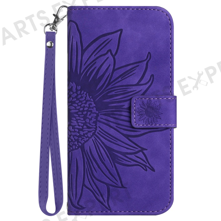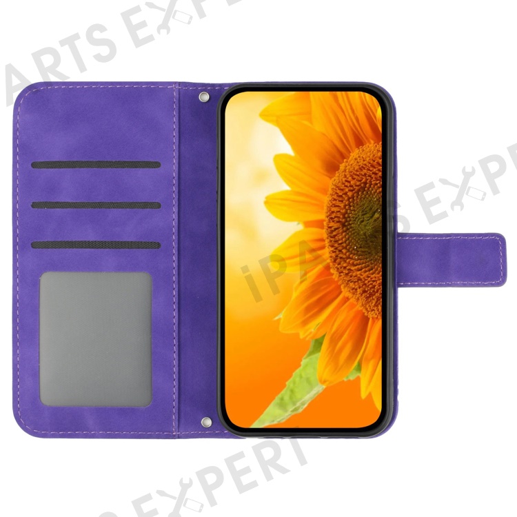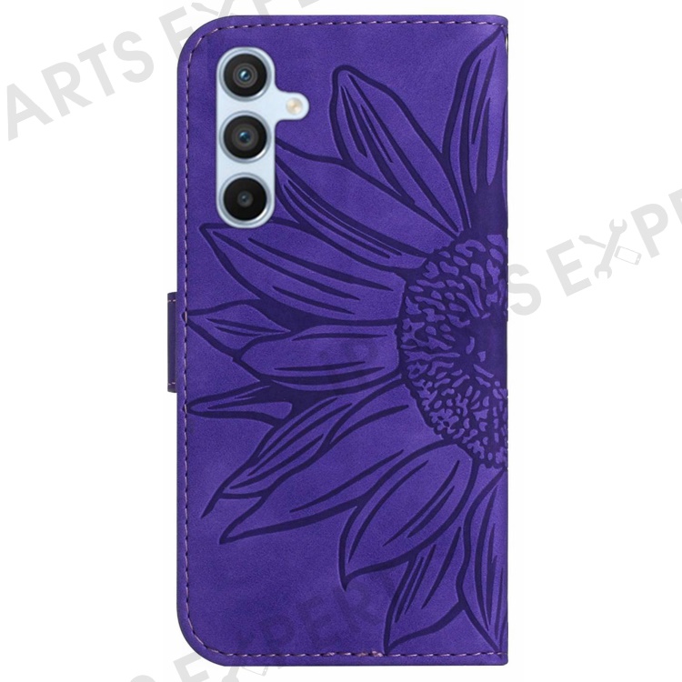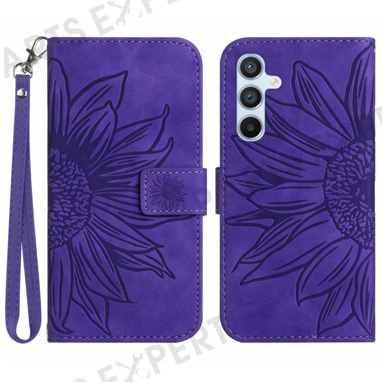 HT04 For Samsung Galaxy M35 5G Case Sunflower Leather Wallet Phone Cover - Dark Purple