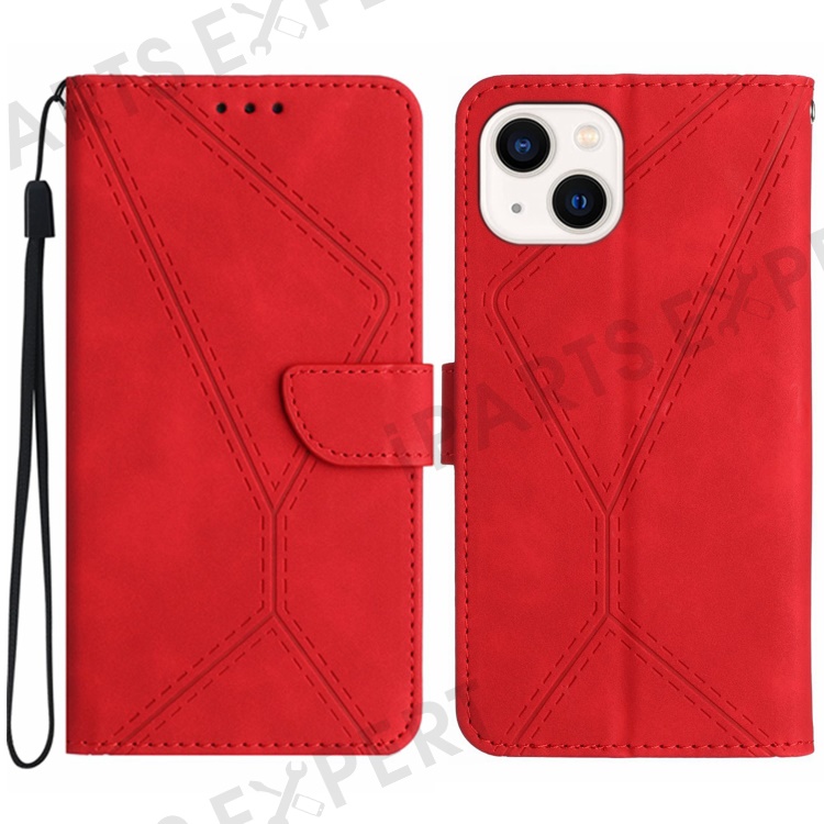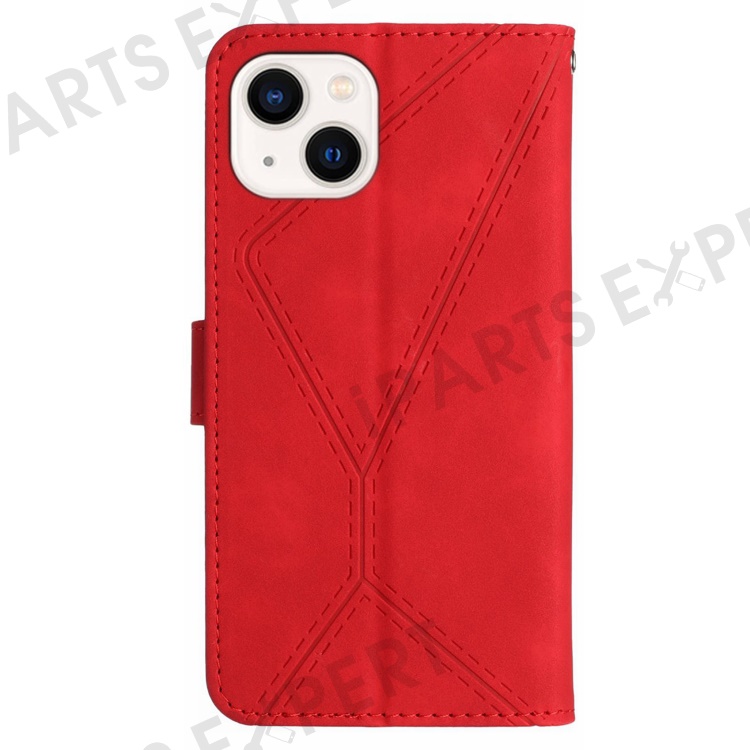 HT05 For iPhone 13 6.1 inch Skin-touch Fully Wrapped Phone Case Magnetic Clasp PU Leather Wallet Cover - Red