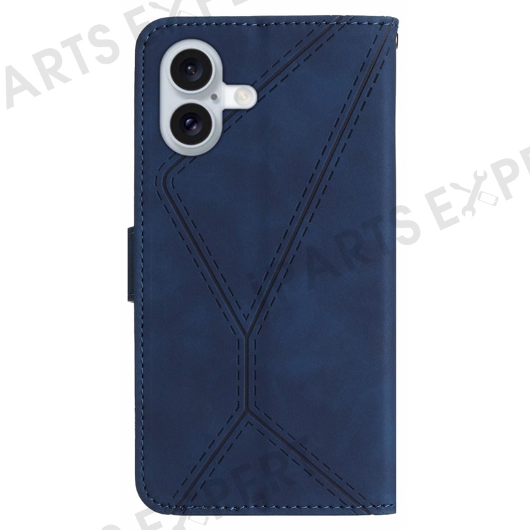 HT05 For iPhone 16 Case Flip Folio Leather Phone Cover with Credit Card Holder - Blue