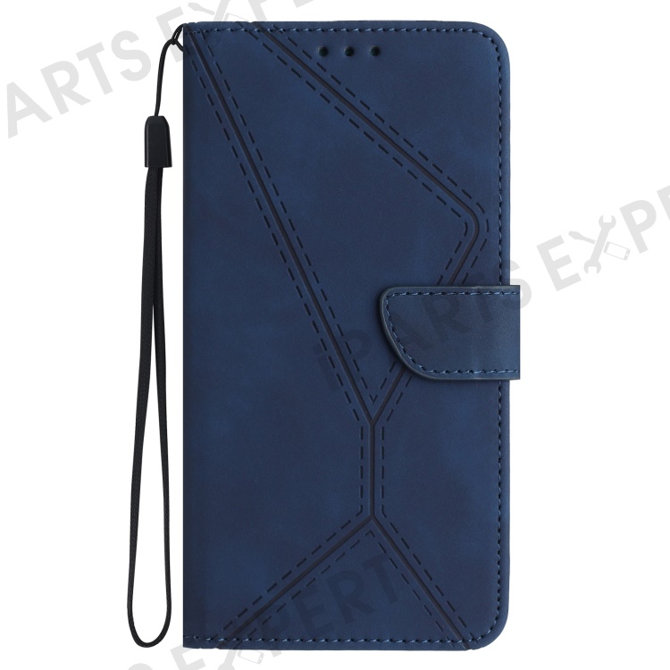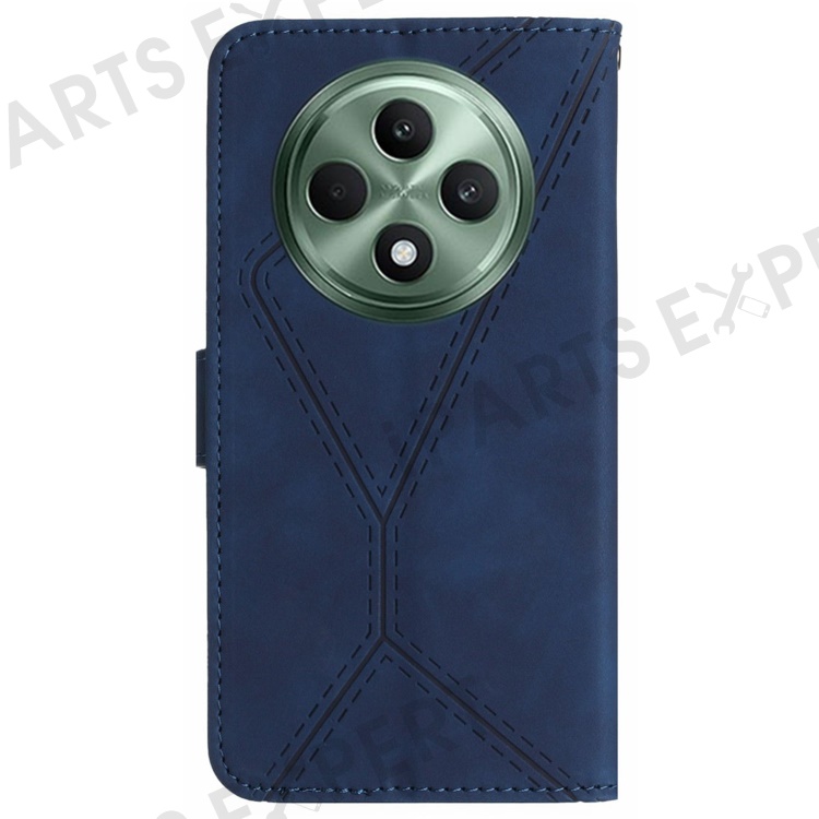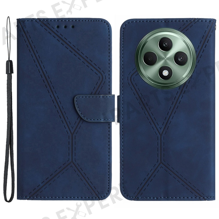 HT05 For Oppo Reno12 F 5G Case Splicing Lines PU Leather Flip Phone Cover - Blue