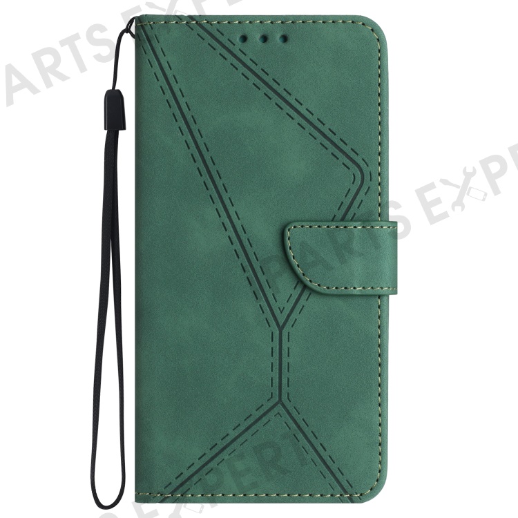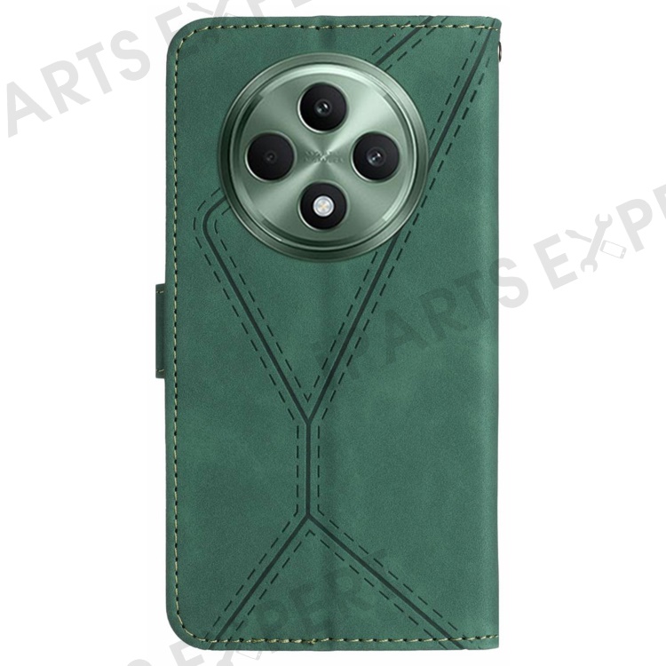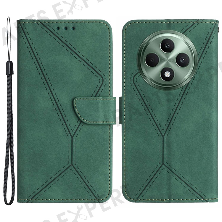 HT05 For Oppo Reno12 F 5G Case Splicing Lines PU Leather Flip Phone Cover - Green